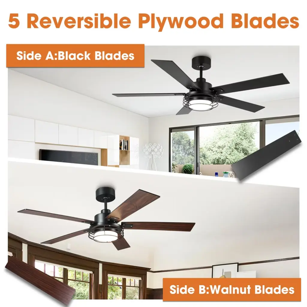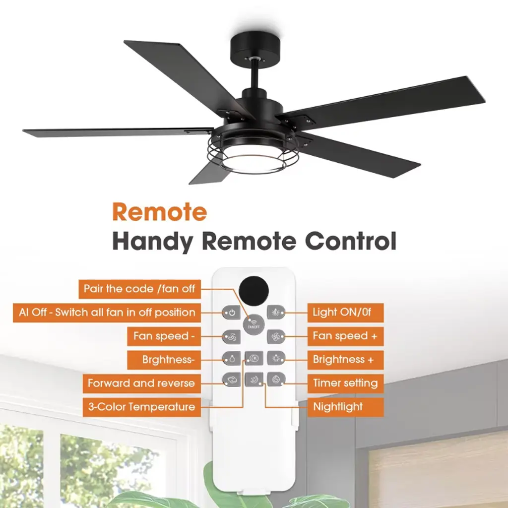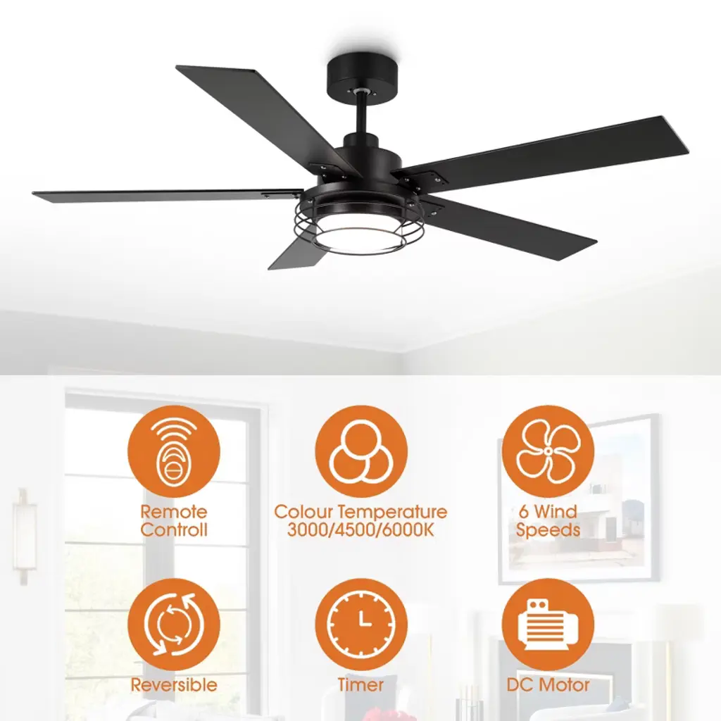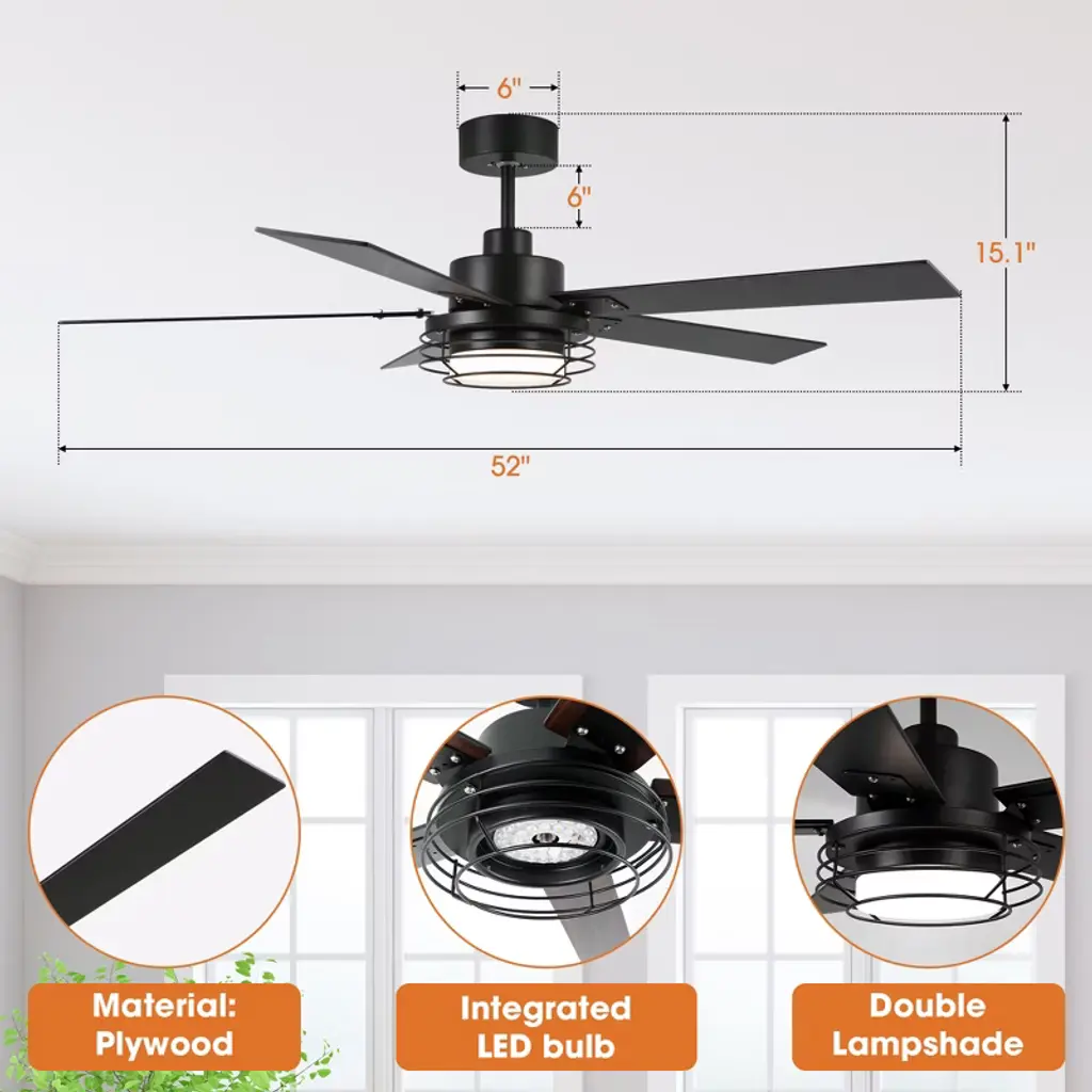 Parrot Uncle 52" Modern Black Led Ceiling Fans With Light And Remote Reversible Fan