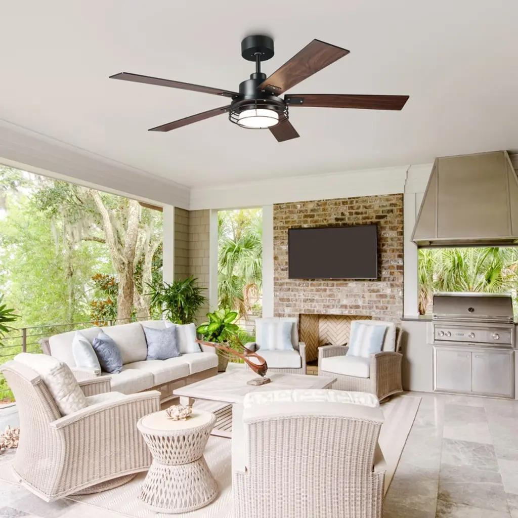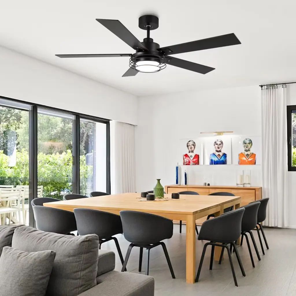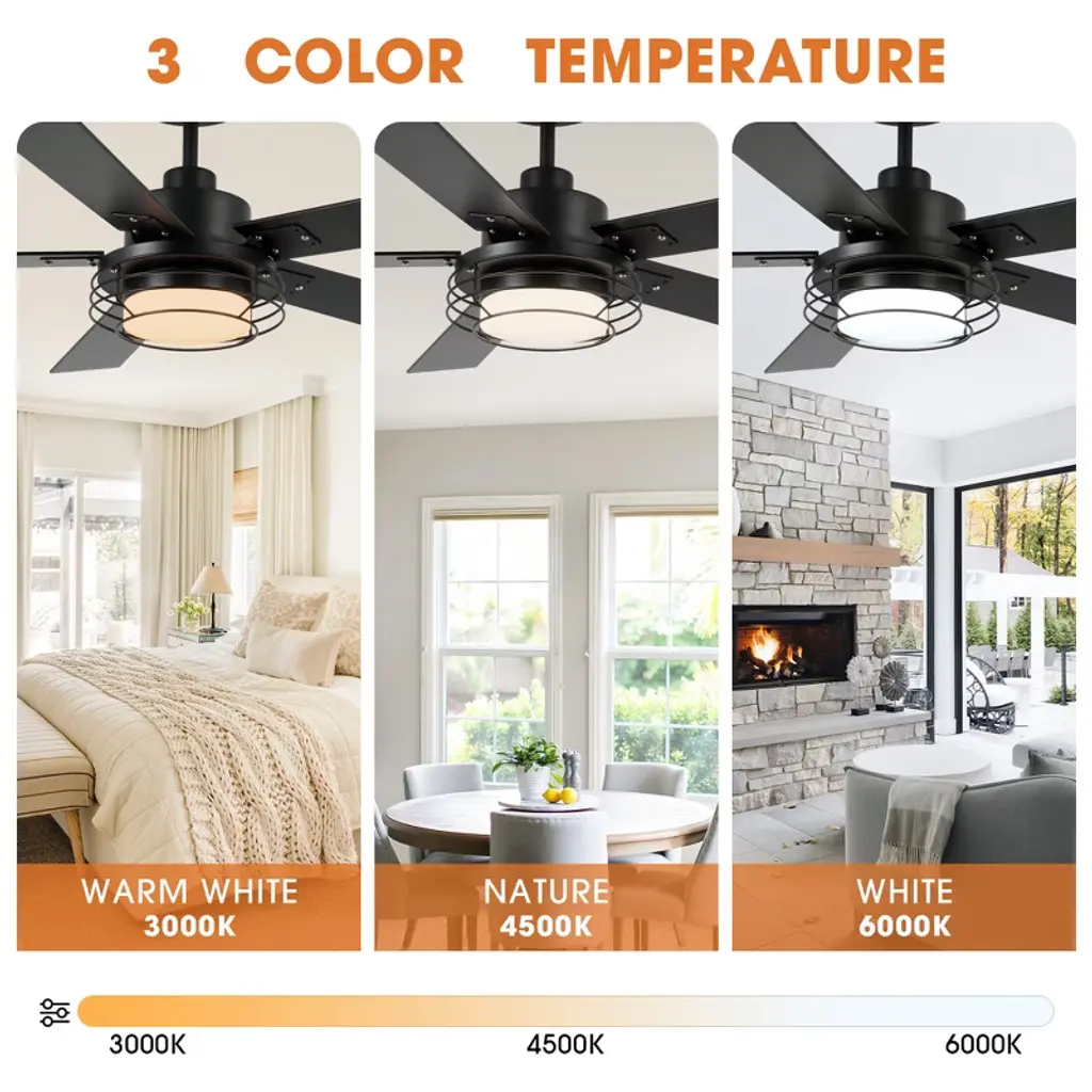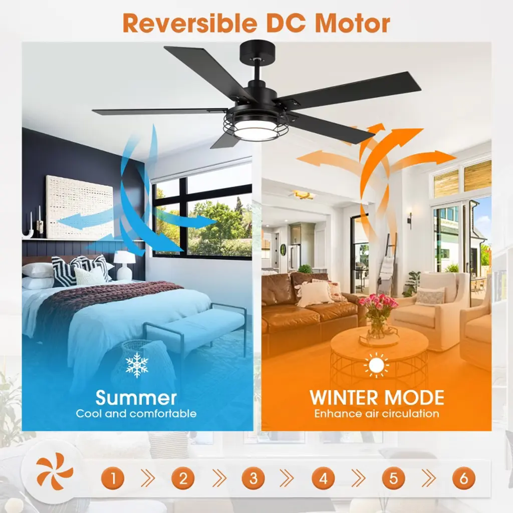 Parrot Uncle 52" Modern Black Led Ceiling Fans With Light And Remote Reversible Fan