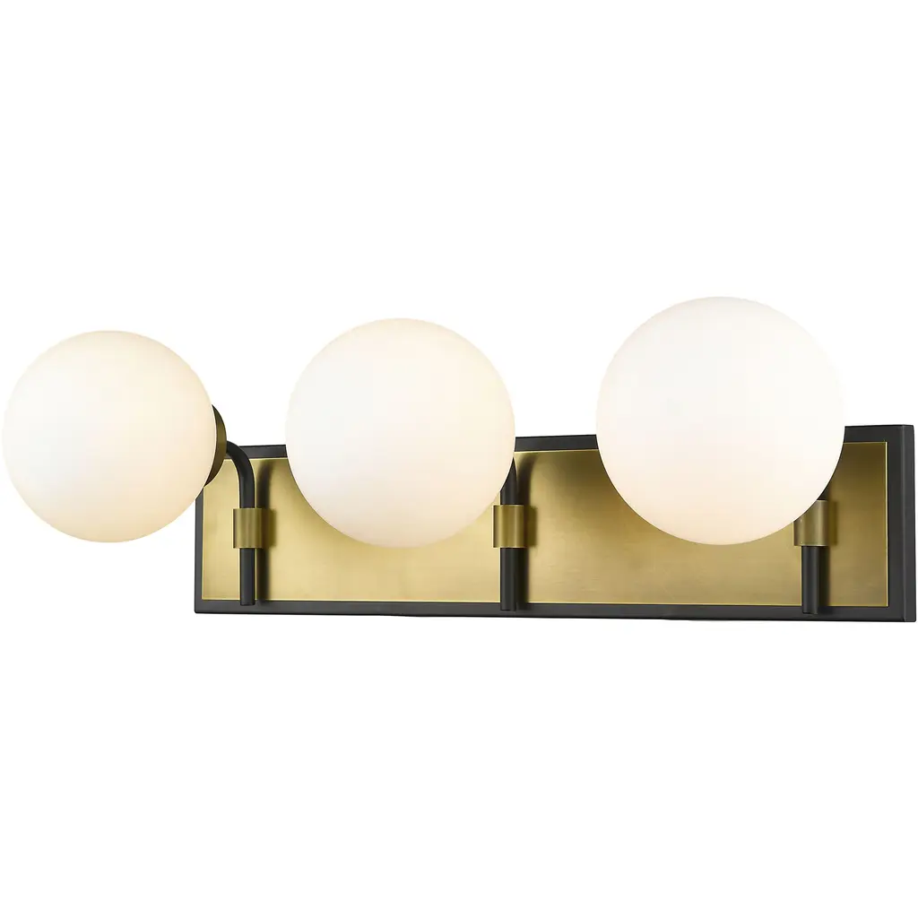 Upgrade the ambiance of your home with this gorgeous three-light vanity. It's crafted with a matte black and olde brass finish and opal shades that deliver a warm radiance. You'll love how it's a perfect fit for a bathroom, powder room or bedroom with its mix of modern panache and old school lines.