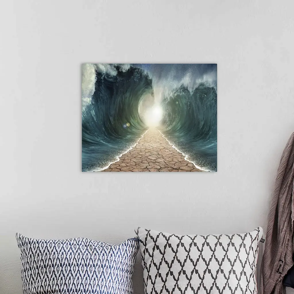 The seas are being parted with a pathway through the ocean.