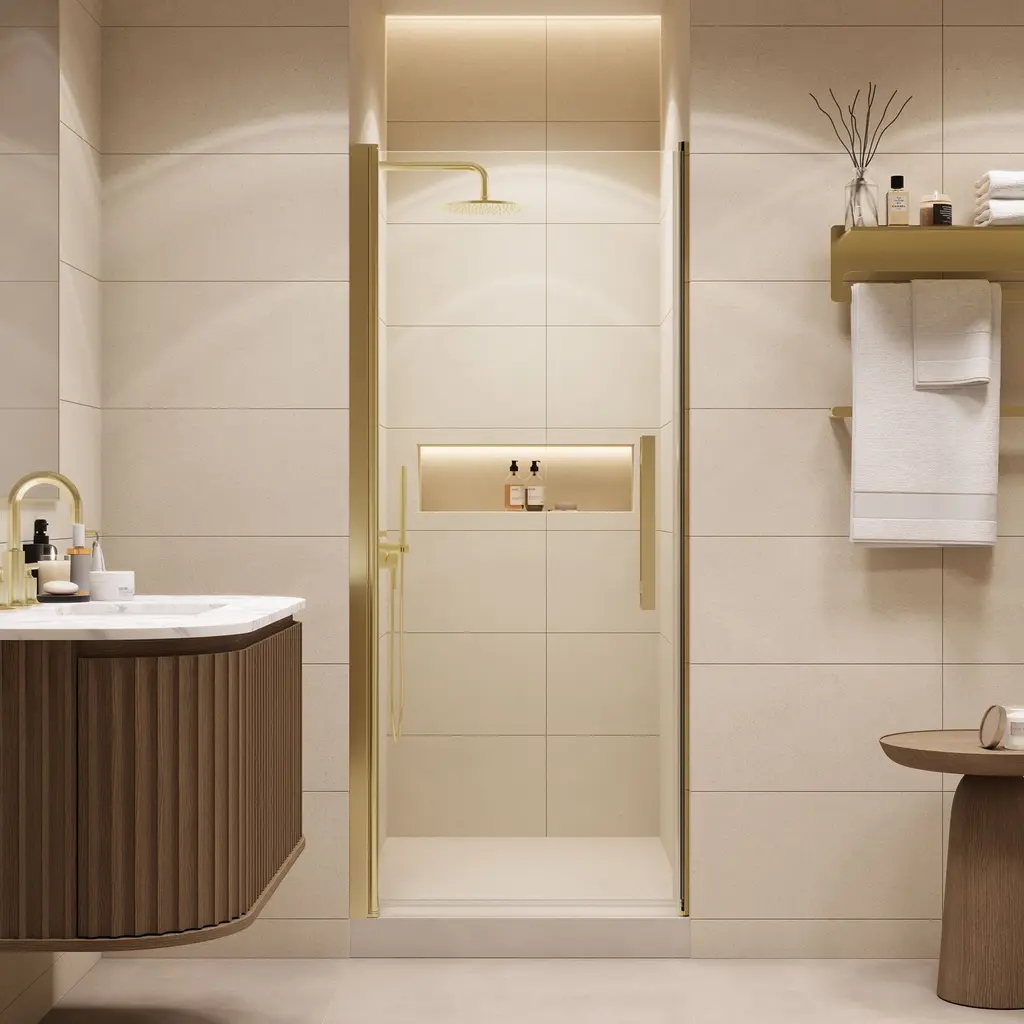 Pasadena Alcove Frameless Pivot Shower Door, 2025 - 33" - Brushed Gold