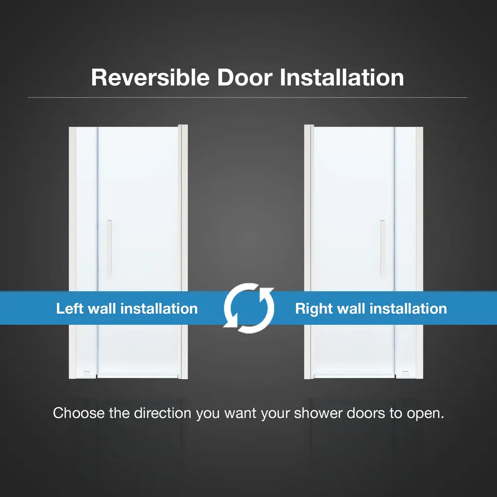 The OVE Decors Pasadena frameless pivot shower door offers the kind of simple, stylish versatility that complements any and all bathroom styles. It has a full-length door-to-wall pivot door mechanism, with premium quality hardware in a matte black finish, and includes a 25 in. wide door panel, ideal for an alcove installation. All glass door panels are made from premium 8mm (5/16”) thick certified tempered glass and feature high quality magnetic door strips and engineered hardware that ensure smooth opening and closing and no leaks.