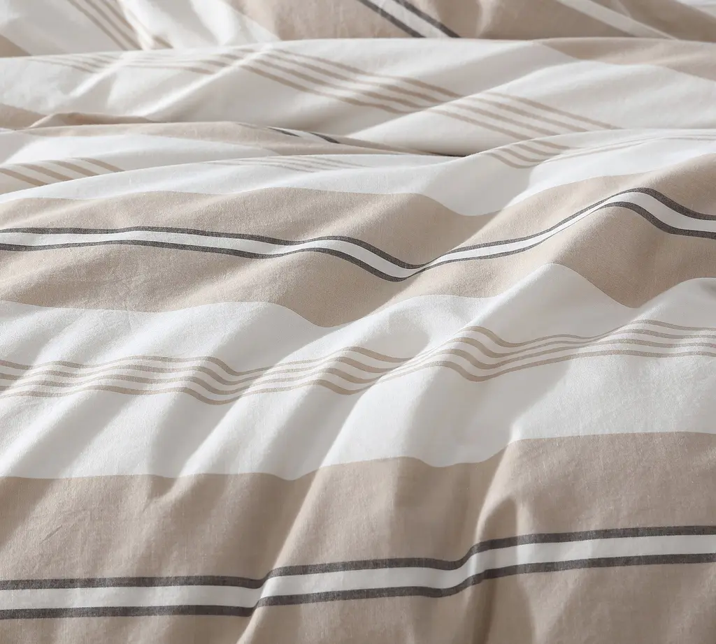 Crafted of pure cotton percale, our comforter set features yarn-dyed stripes in versatile neutral tones and delicate, soft slubs for rich texture. Lightweight and breathable, it’s perfect for year-round use.