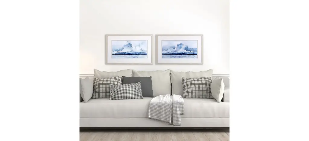 These ocean-inspired landscape prints capture the fury of the sea and its beauty. You can almost feel the energy depicted in the crashing waves. Passing Rain Storm Wall Art, set of 2, also features white-washed, distressed frames to set the finishing touch.