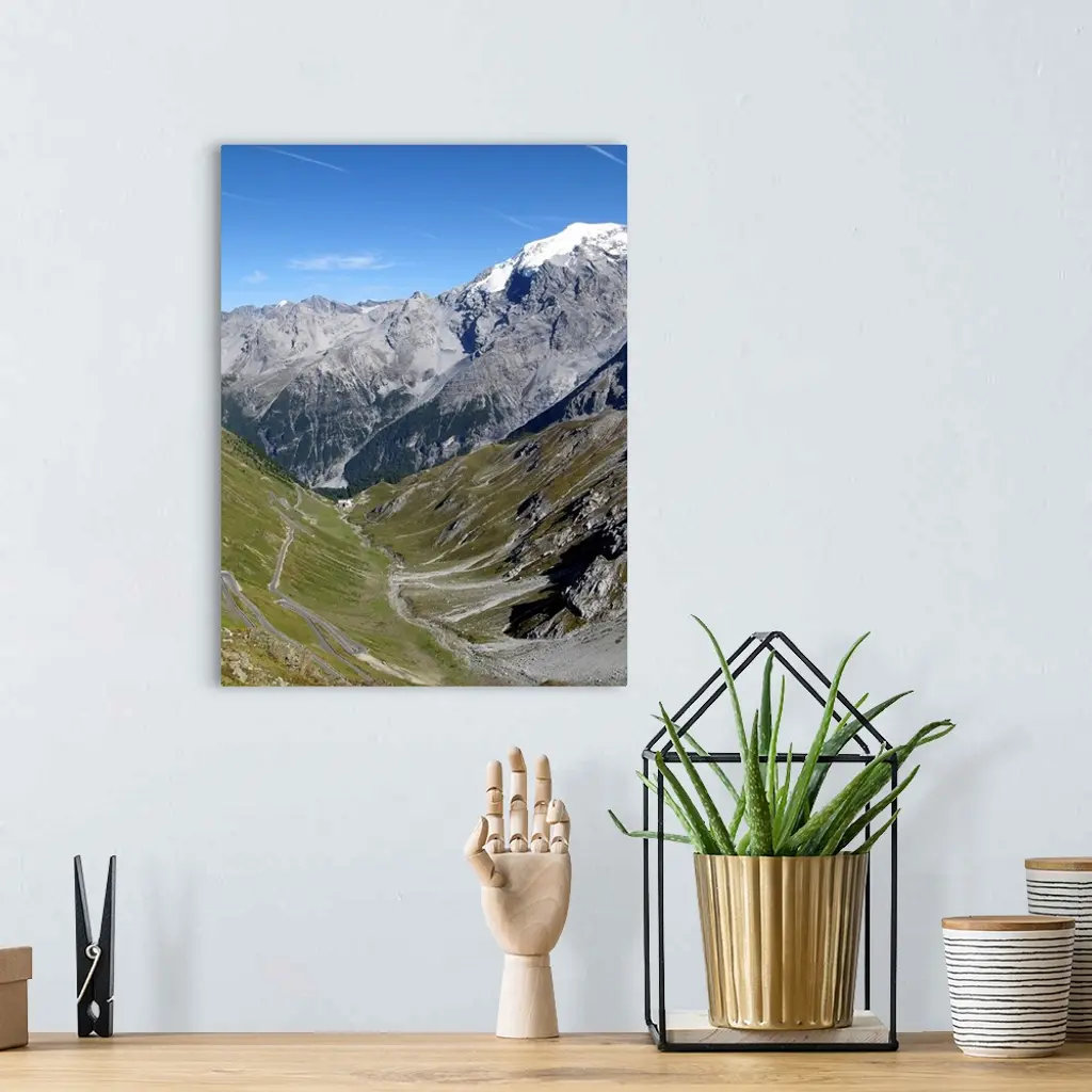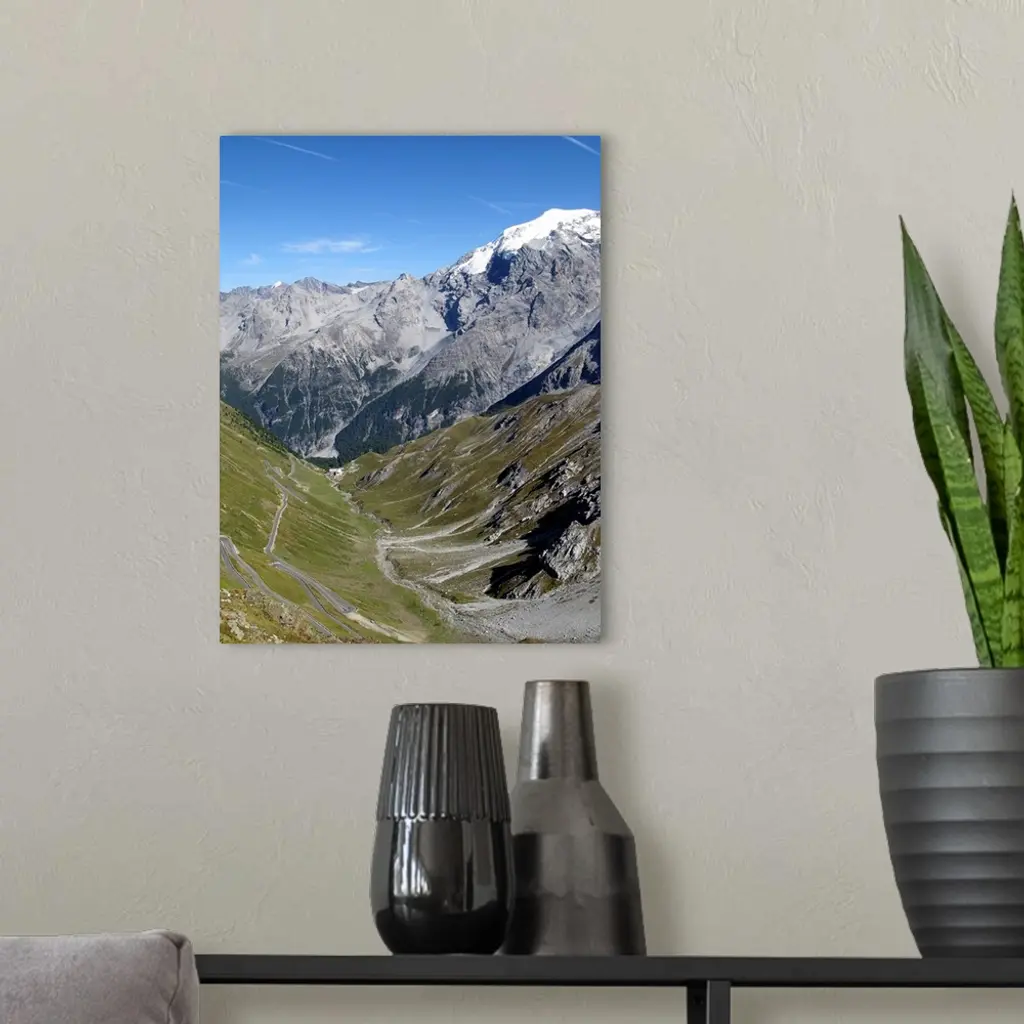Western side of Passo dello Stelvio, Stelvio Pass, 2757 m (9045 feet) is the highest paved mountain pass in the Eastern Alps, and the second highest in the Alps; Italy. It sits inside the Stelvio National Park.