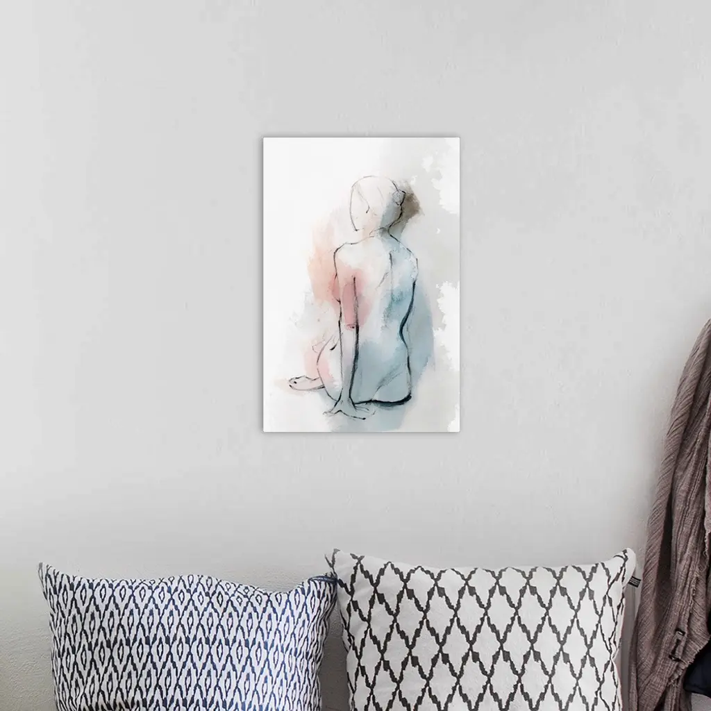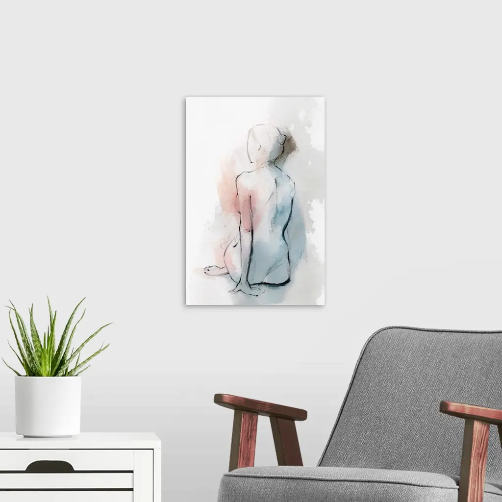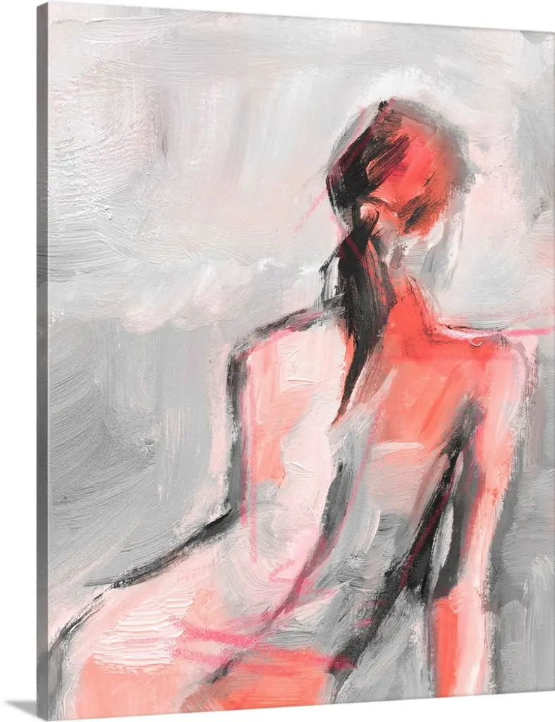 A vertical portrait of a female sitting with her back toward the viewer as she looks over her shoulder.