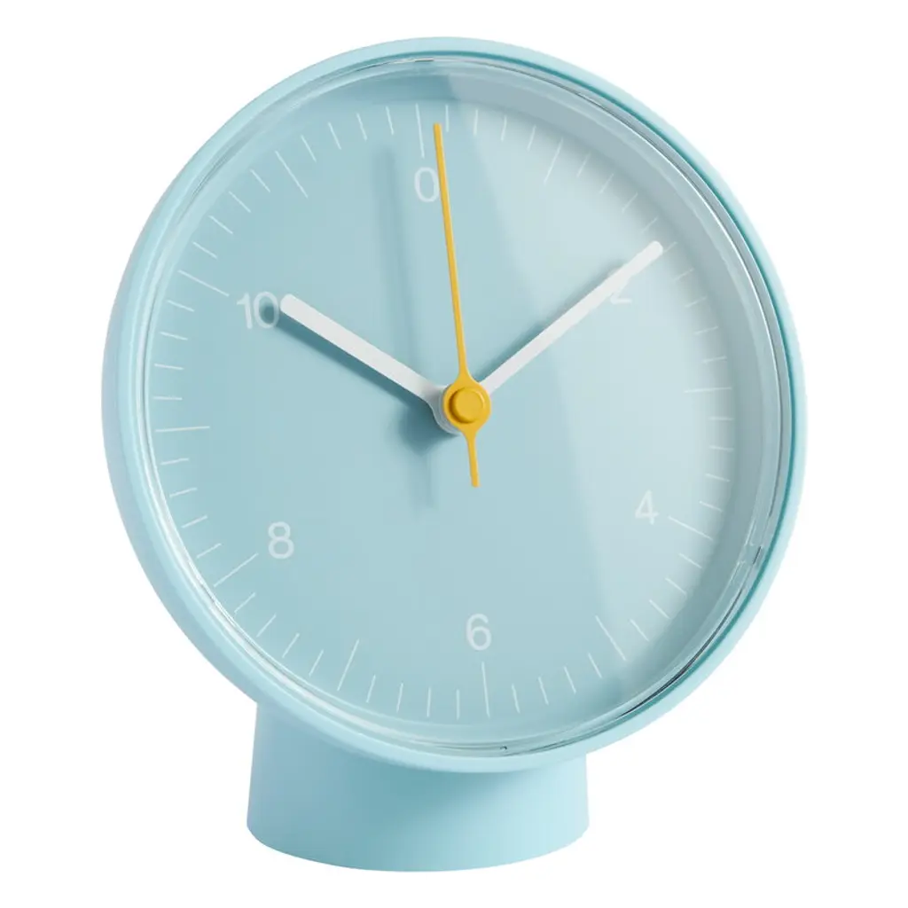 Turquoise blue enamel is finished in gold plate with a luxury dove grey velvet back. This gorgeous desk or bedside round clock has an alarm and the movement is encased within a removable silver cover. The clock comes with 2 screw in legs.