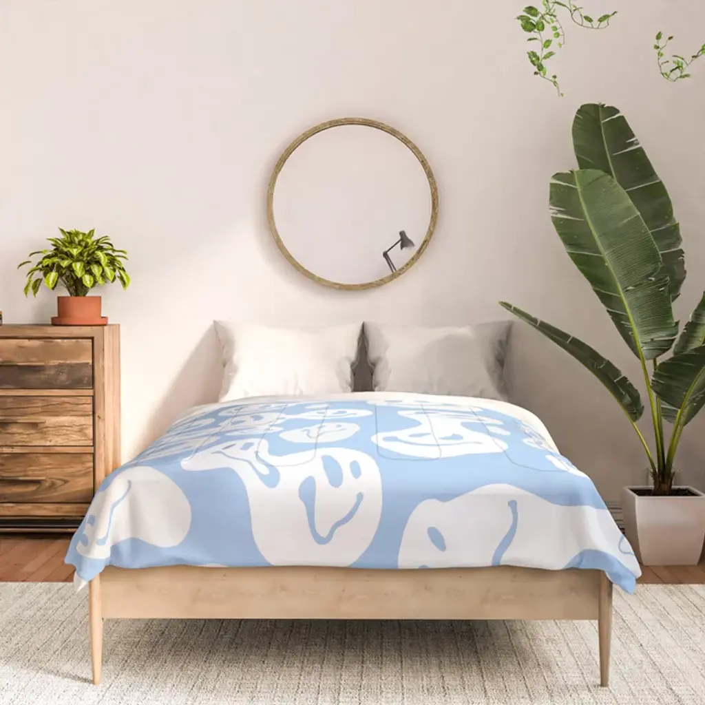 Pastel Blue Dripping Smiley Comforter