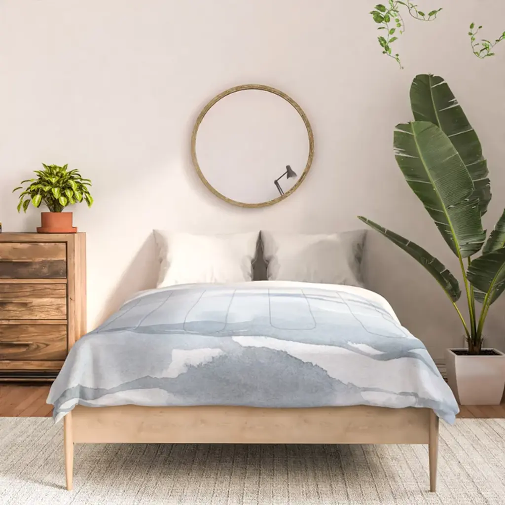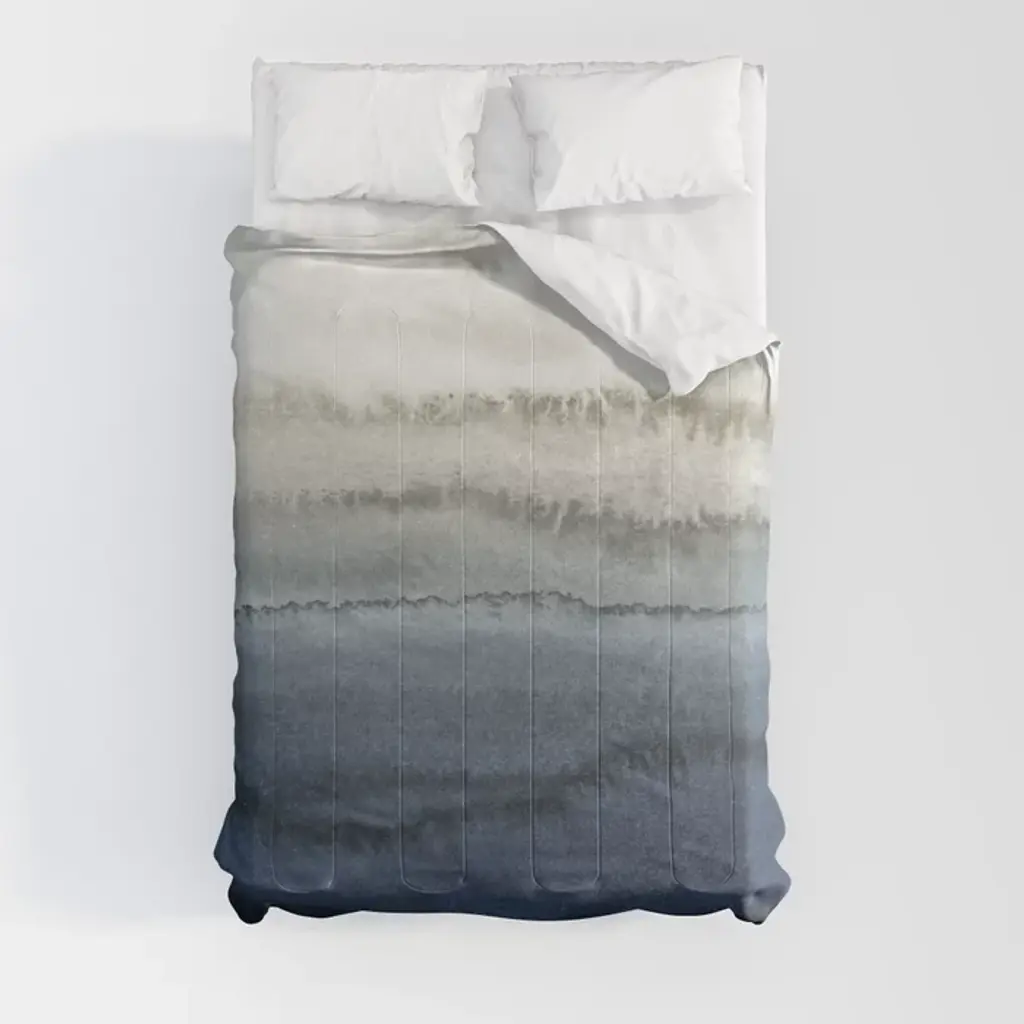 Pastel Blue Gray Abstract Watercolor Brushstrokes Stripes Pattern Comforter