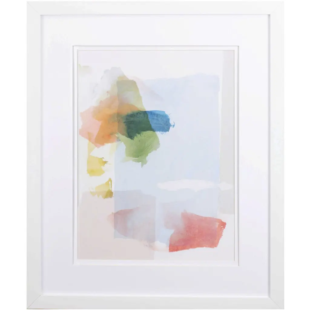 Designed by us and available only at One Kings Lane: A reproduction of an original work, this ethereal watercolor design features overlapping geometric shapes in dreamy pastel hues. Printed on deckled matte paper, floated over an off-white mat, and displayed in a simple frame, this piece arrives ready to hang.