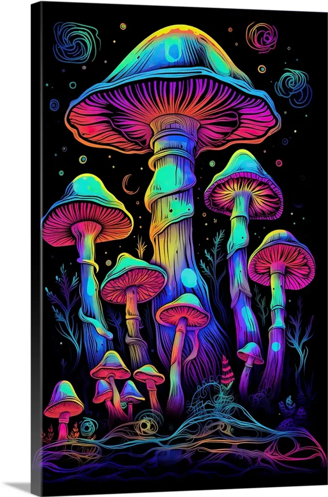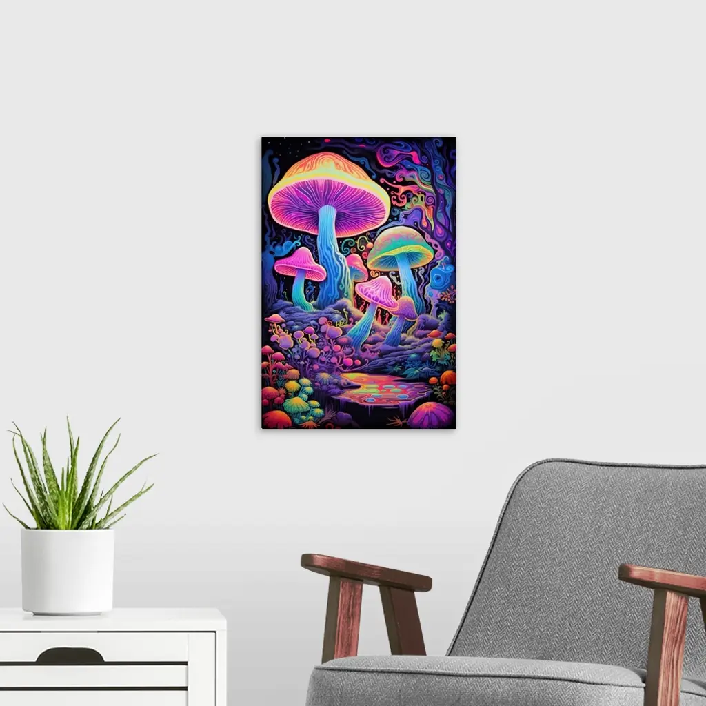 Pastel Neon Mushrooms wall art for home and office decor. Discover canvas art prints, photos, mural, big canvas art and framed wall art in GreatBigCanvas.com's varied collections.