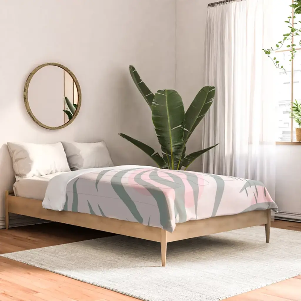 Pastel Pink Abstract Leaf Pattern Comforter