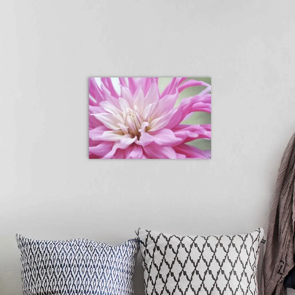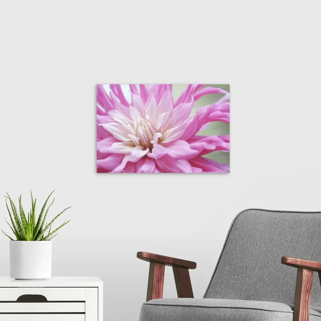 Macro photograph of a dahlia flower, with a smooth gradient of pink shades on the petals.