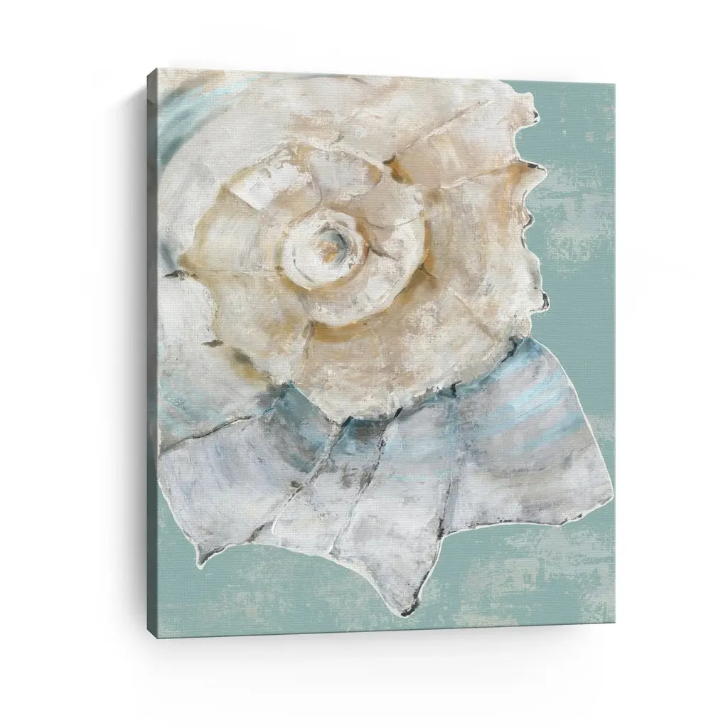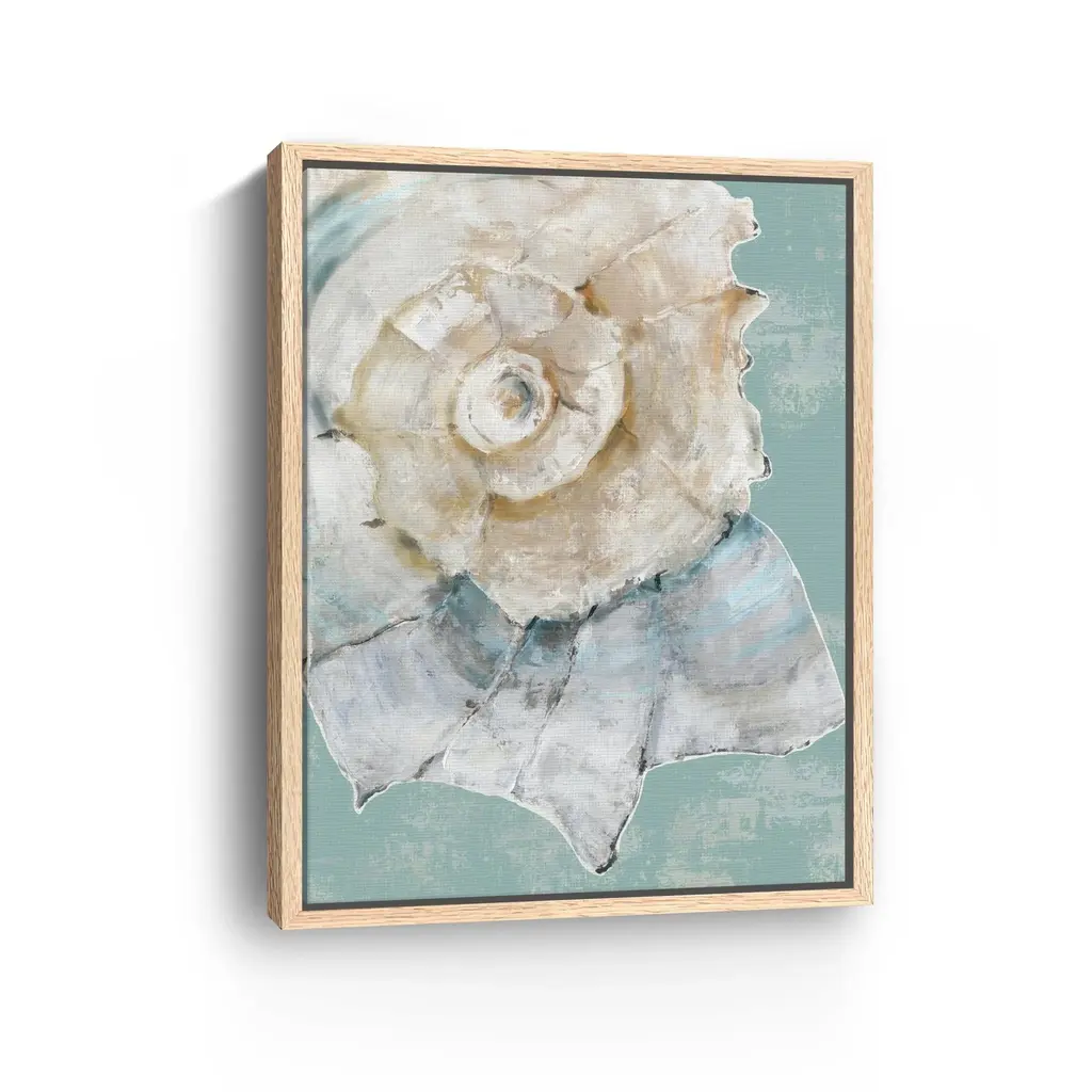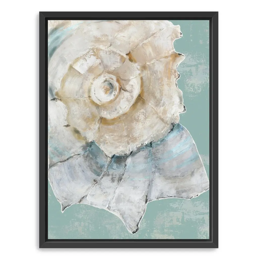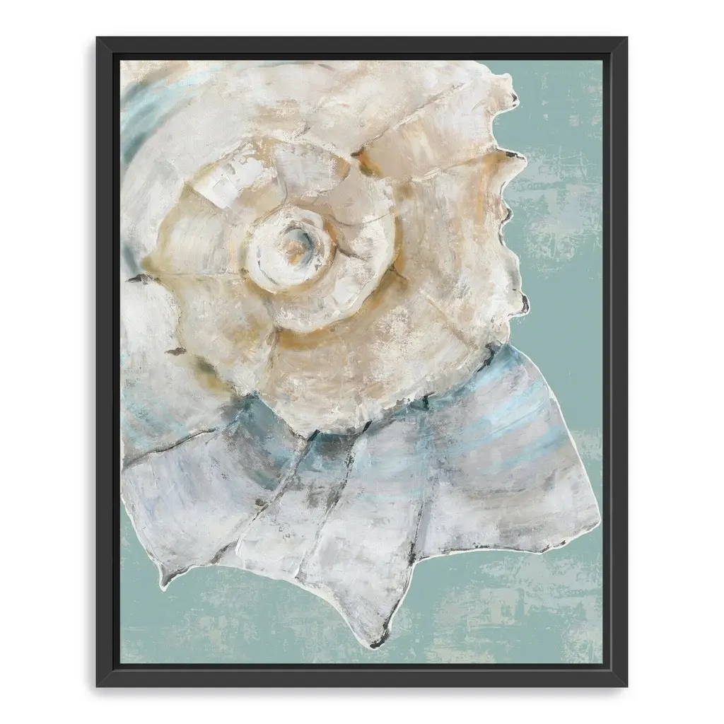Bring the beauty of the ocean into your home with this enchanting canvas art print, featuring an array of delicate sea shells that evoke the tranquility of coastal living. The soft, soothing colors and intricate details create a serene atmosphere, making it a perfect addition to any space.Available in black frame, dark walnut frame and oak frames, or as a frameless canvas. Our Gallery Wrap Canvas Prints are proudly assembled with high quality materials in California, USA. Each piece is printed on a thick, archival grade canvas using Giclee technology. It is then hand-stretched by our experienced artisans over solid pine bars, which will not warp over time. The final product is a piece personally crafted for you to confidently display on your wall. Care and Assembly: Ensure that the location of your piece has little to no exposure to heat, sunlight, and moisture. Wipe clean, only if needed. Each piece includes a sawtooth hanger to hang on your wall vertically.