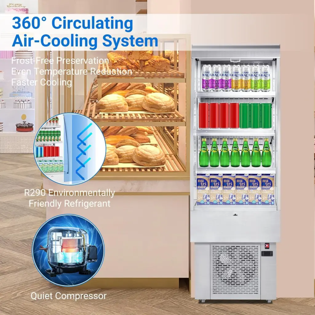 1.Compact 8.8 Cu.Ft Countertop Design for Space-Saving & High-Impact Merchandising This refrigerated pastry display packs 8.8 cubic feet of storage into a countertop-friendly footprint, eliminating the need for bulky floor-standing units¡ªcritical for small bakeries, cozy caf¨¦s, or busy restaurant serving areas where space is at a premium. Its sleek design lets you place it strategically near checkout counters, pastry bars, or customer waiting zones¡ªhigh-traffic spots that drive impulse purchases. By keeping cakes, pastries, and desserts visible in these key areas, you¡¯ll encourage customers to add a sweet treat to their order, boosting sales without sacrificing valuable work or seating space. 2.Shatter-Resistant Tempered Glass Door for Durability & Clear Product Visibility Featuring a high-grade tempered glass door, this display case balances safety, durability, and aesthetics. Tempered glass resists shattering (even if accidentally bumped by busy staff or customers), making it ideal for high-traffic commercial environments. The crystal-clear panel offers unobstructed views of your desserts, letting customers see the freshness of frosting, layers of cake, or delicate pastries¡ªno need to open the door (which preserves the internal temperature and keeps items fresh longer). The glass is also easy to wipe clean of smudges, fingerprints, or spills, ensuring your display always looks neat and professional. 3.Cool LED Interior Lighting to Highlight Dessert Appeal Integrated LED lighting inside the fridge casts bright, even illumination that enhances the visual appeal of your pastries¡ªwithout generating excess heat that could dry out cakes or melt frosting. The cool light highlights intricate details (like piped designs, fresh fruit toppings, or flaky pastry layers), making your products look more appetizing and enticing to customers. Unlike traditional incandescent bulbs, LED lights are energy-efficient, using less power to keep your display bright¡ªhelping reduce long-term operating costs. Whether your space is brightly lit or dimly cozy, the LED lighting ensures every dessert stands out. 4.Adjustable Wire Shelves for Flexible, Customizable Storage Equipped with adjustable wire shelves, this display case lets you tailor the interior to fit a wide range of dessert sizes¡ªfrom tall 3-layer cakes and large pastry platters to small bite-sized treats (like macarons, cookies, or mini tarts). The shelves are easy to reposition, so you can switch up your display for seasonal items (e.g., holiday yule logs in winter, fruit tarts in summer) or rotating daily specials. The wire design also allows air to circulate freely around items, ensuring consistent cooling and preventing hot spots that could compromise freshness. Every inch of the 8.8 Cu.Ft capacity is usable, supporting creative merchandising that keeps your display looking fresh and inviting. 5.Sleek White Finish & Energy-Efficient Cooling for Style & Cost Savings The display case¡¯s modern white exterior adds a clean, sophisticated touch that complements upscale bakeries, minimalist caf¨¦s, or classic restaurants¡ªblending seamlessly with existing decor instead of clashing with it. Beyond aesthetics, it features an advanced energy-efficient cooling system that maintains a consistent temperature to keep pastries fresh longer (reducing waste from stale items). The low power consumption cuts down on monthly utility bills, making it a cost-effective choice for busy commercial spaces that run equipment all day. This combination of style and efficiency ensures the display case enhances your brand¡¯s look while supporting your business¡¯s bottom line.