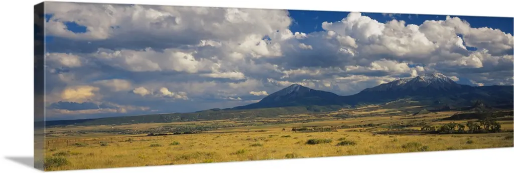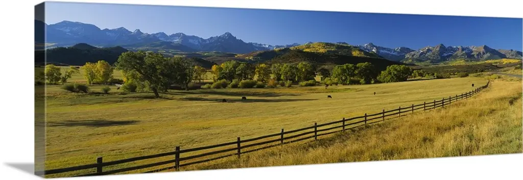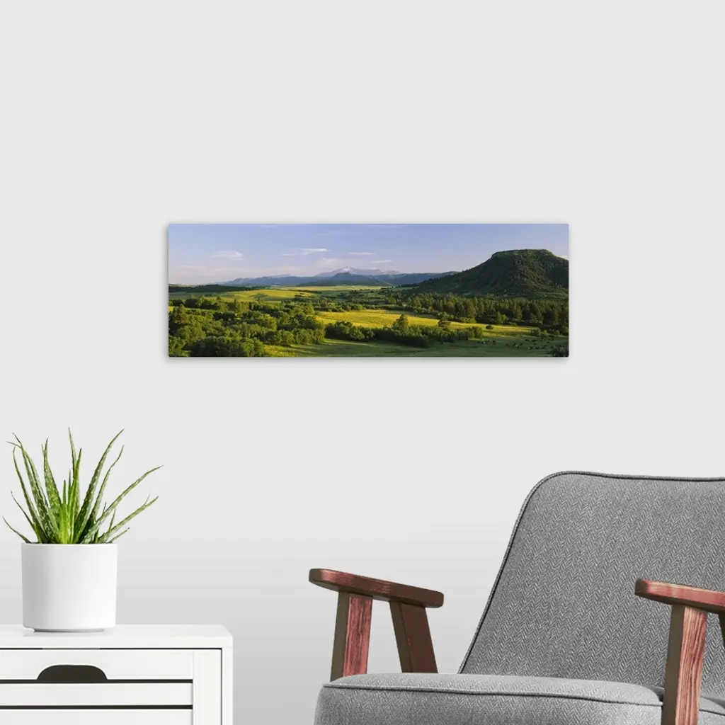 Pasture on a landscape and a mountain in the background, Pikes Peak, Douglas County, Colorado wall art for home and office decor. Discover canvas art prints, photos, mural, big canvas art and framed wall art in GreatBigCanvas.com's varied collections.