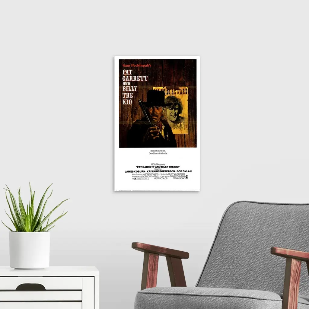 Coburn is Garrett, one-time partner of Billy the Kid (Kristofferson), turned sheriff. He tracks down and eventually kills the outlaw. The uncut director's version released on video is a vast improvement over the theatrical and TV versions. Dylan's soundtrack includes the now famous Knockin' on Heaven's Door.