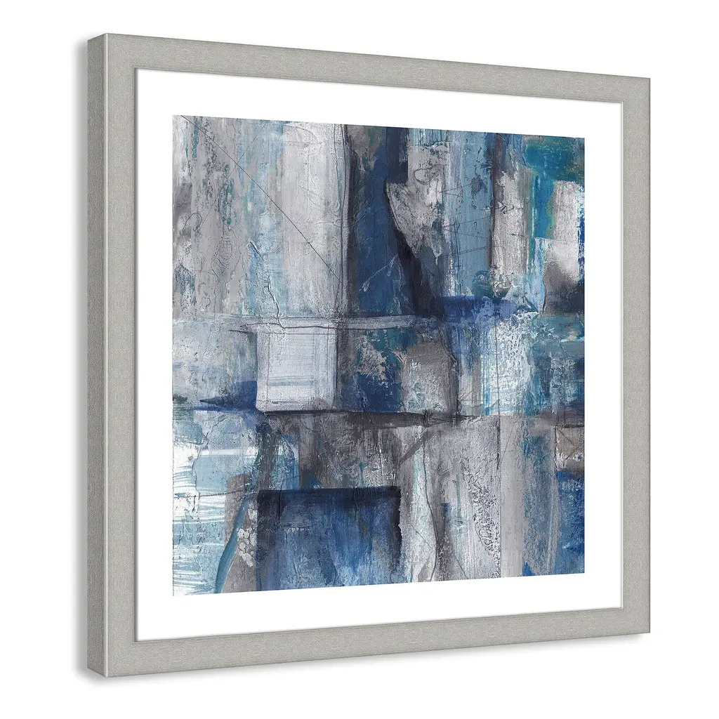 Patchwork Abstract I', an alluring abstract image featuring a cool palette of grays and blues, combines geometry and breathtaking detail to create an industrial, modern effect. This piece features an organic quality with textured brushstrokes and imperfect lines to create a gallery quality touch for your home or office. Finished in a modern frame made of PS materials, this is the perfect addition to your walls. Archival fine art giclée print on acid-free and lignin-free 100% cotton rag paper; image includes a bright white self-matting border Printed with gallery-quality inks using the finest giclée print technology for unsurpassed color gamut and clarity Lightweight and finished under shatter-resistant acrylic; hanging hardware attached for easy and secure installation Handcrafted in the USA and ships with a Certificate of Authenticity Lightweight and finished under shatter-resistant acrylic