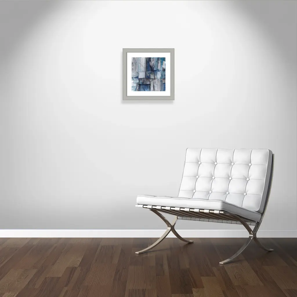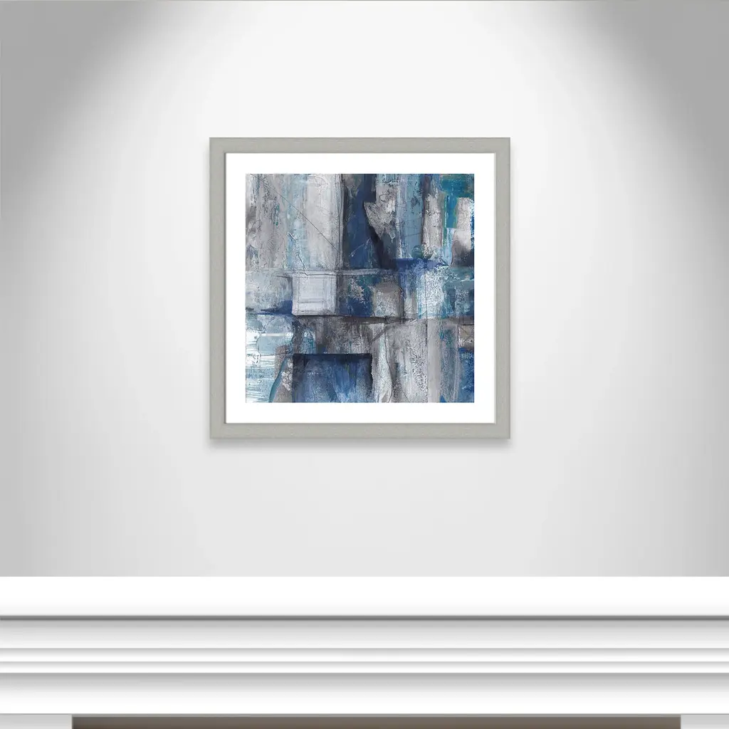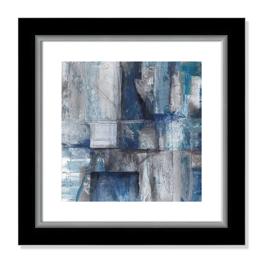 Patchwork Abstract I', an alluring abstract image featuring a cool palette of grays and blues, combines geometry and breathtaking detail to create an industrial, modern effect. This piece features an organic quality with textured brushstrokes and imperfect lines to create a gallery quality touch for your home or office. Finished in a modern frame made of PS materials, this is the perfect addition to your walls. Archival fine art giclée print on acid-free and lignin-free 100% cotton rag paper; image includes a bright white self-matting border Printed with gallery-quality inks using the finest giclée print technology for unsurpassed color gamut and clarity Lightweight and finished under shatter-resistant acrylic; hanging hardware attached for easy and secure installation Handcrafted in the USA and ships with a Certificate of Authenticity Lightweight and finished under shatter-resistant acrylic