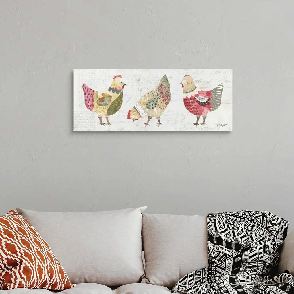 Patchwork Chickens I wall art for home and office decor. Discover canvas art prints, photos, mural, big canvas art and framed wall art in GreatBigCanvas.com's varied collections.