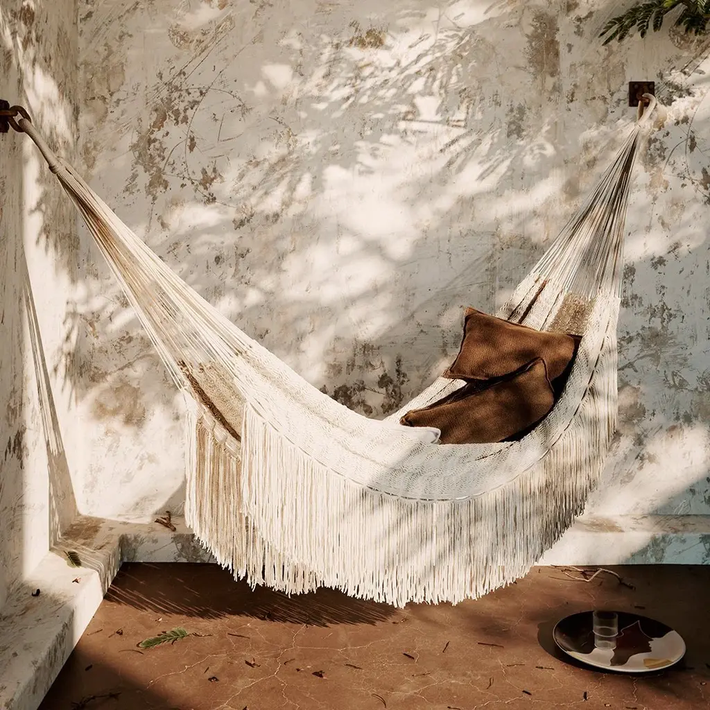 Lean back and enjoy the peace and quiet of the outdoors in our Path Hammock. Made entirely from recycled PET-yarn spun from post-consumer plastic bottles, the hammock is not only sustainable, but especially durable for continual outdoor use. Two rows of fringing in a contrasting color emphasize Path’s relaxed and carefree expression.