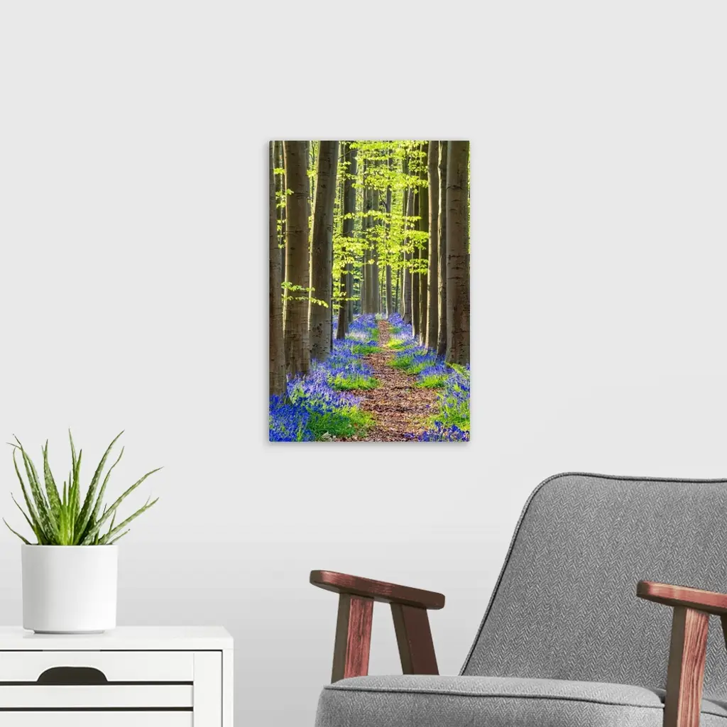 Path Through Bluebell Flowers And Beech Forest, Hallerbos Forest, Belgium