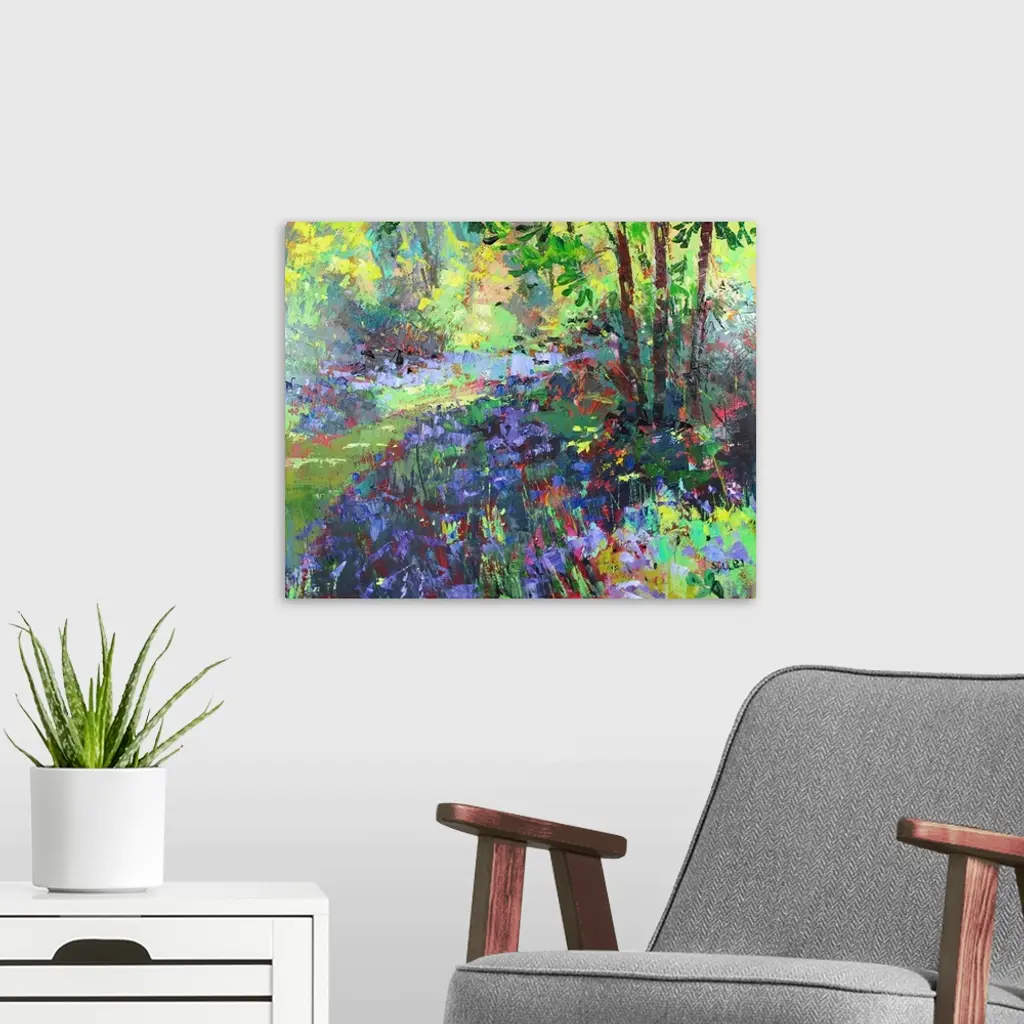 Path Through the Bluebells, 2018, (originally oil) by Sylvia Paul.