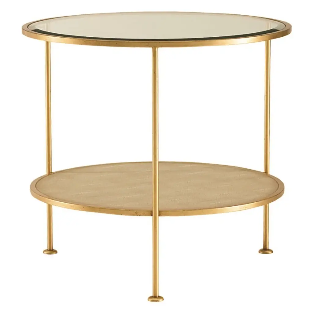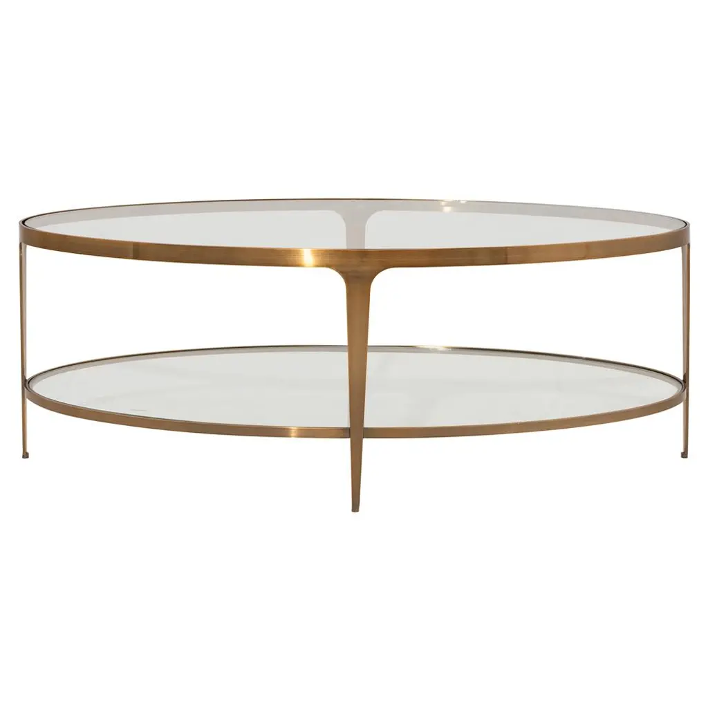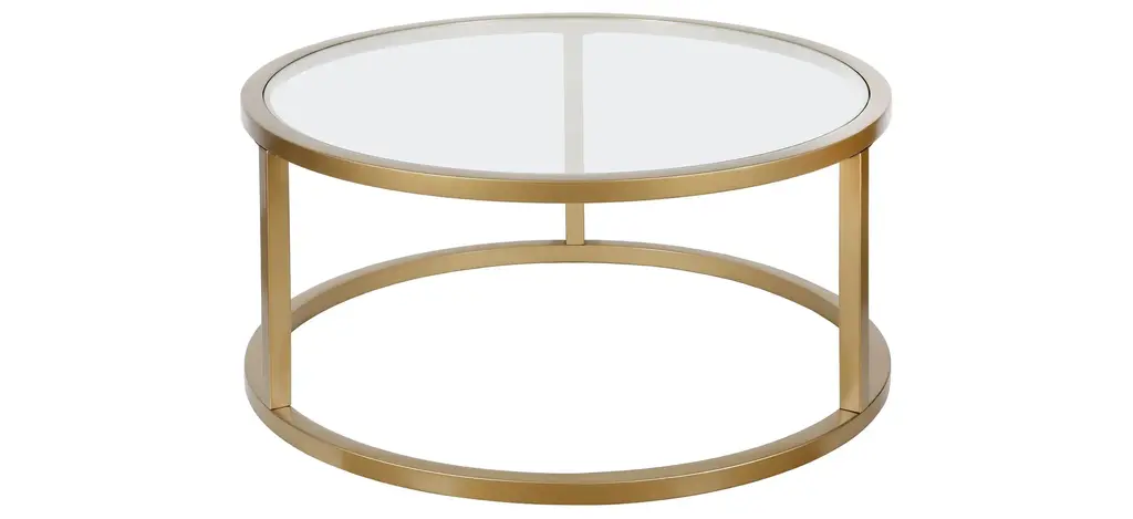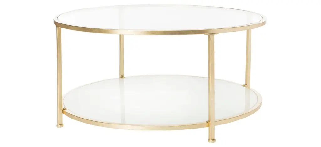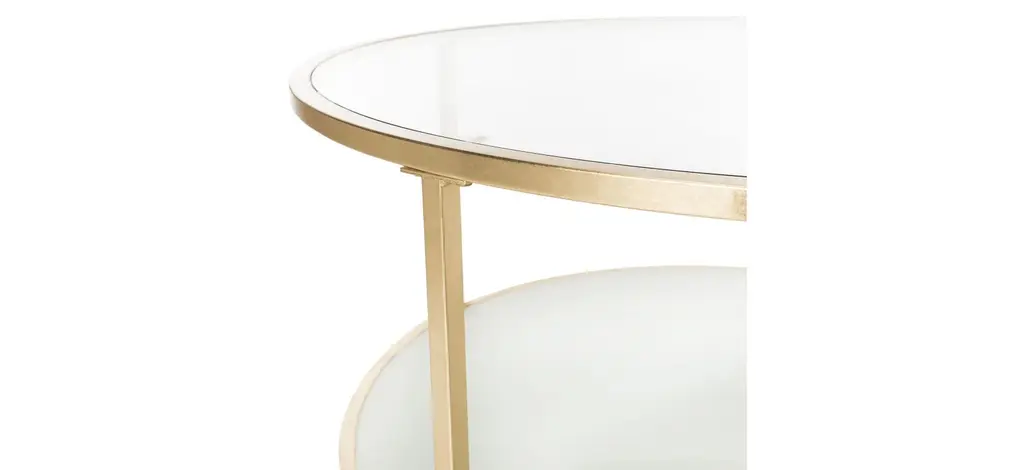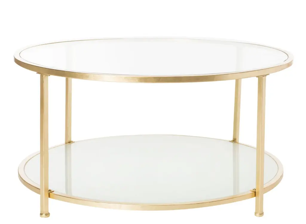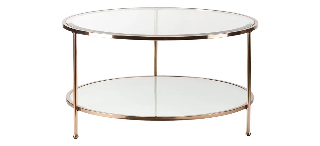Bring modern elegance to the living room with this 2 tier round Patience coffee table. Finely crafted with sleek lines and polished glass, its luxurious gold finish makes it a timeless investment. Perfect for a stylish display.