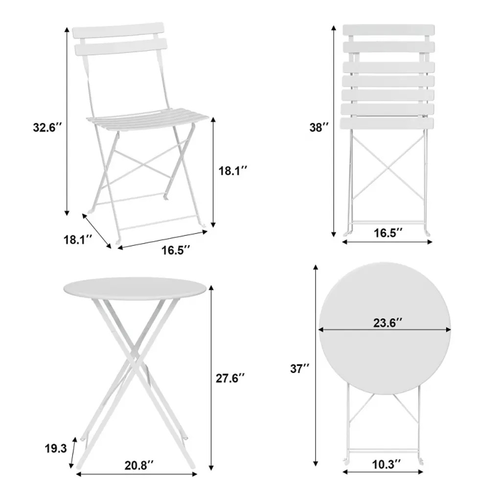 Patio Bistro Sets, 3-Piece Outdoor Furniture with Round Table & 2 Folding Chairs, Compact Balcony Set for Small Spaces, Porch/Garden, White