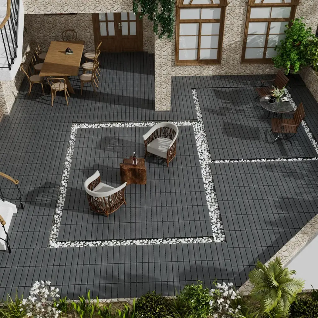 Patio Floor Tiles Pack Of 11. Wpc Wood-plastic Composite, Diy Interlocking. Quick Deck, Court Tile