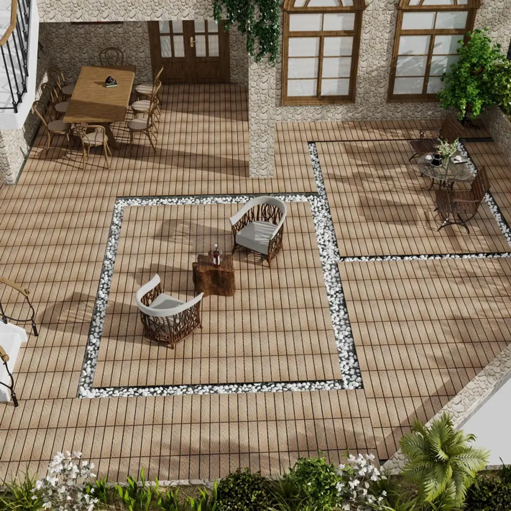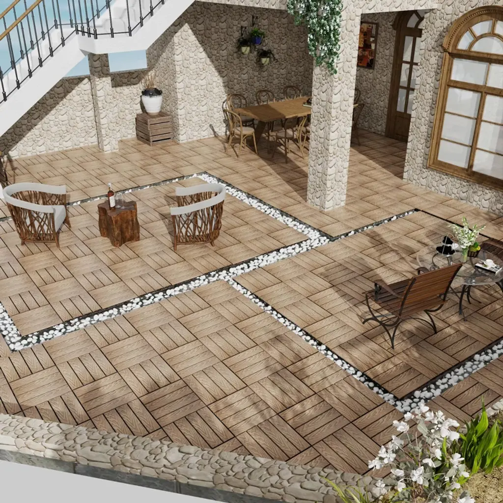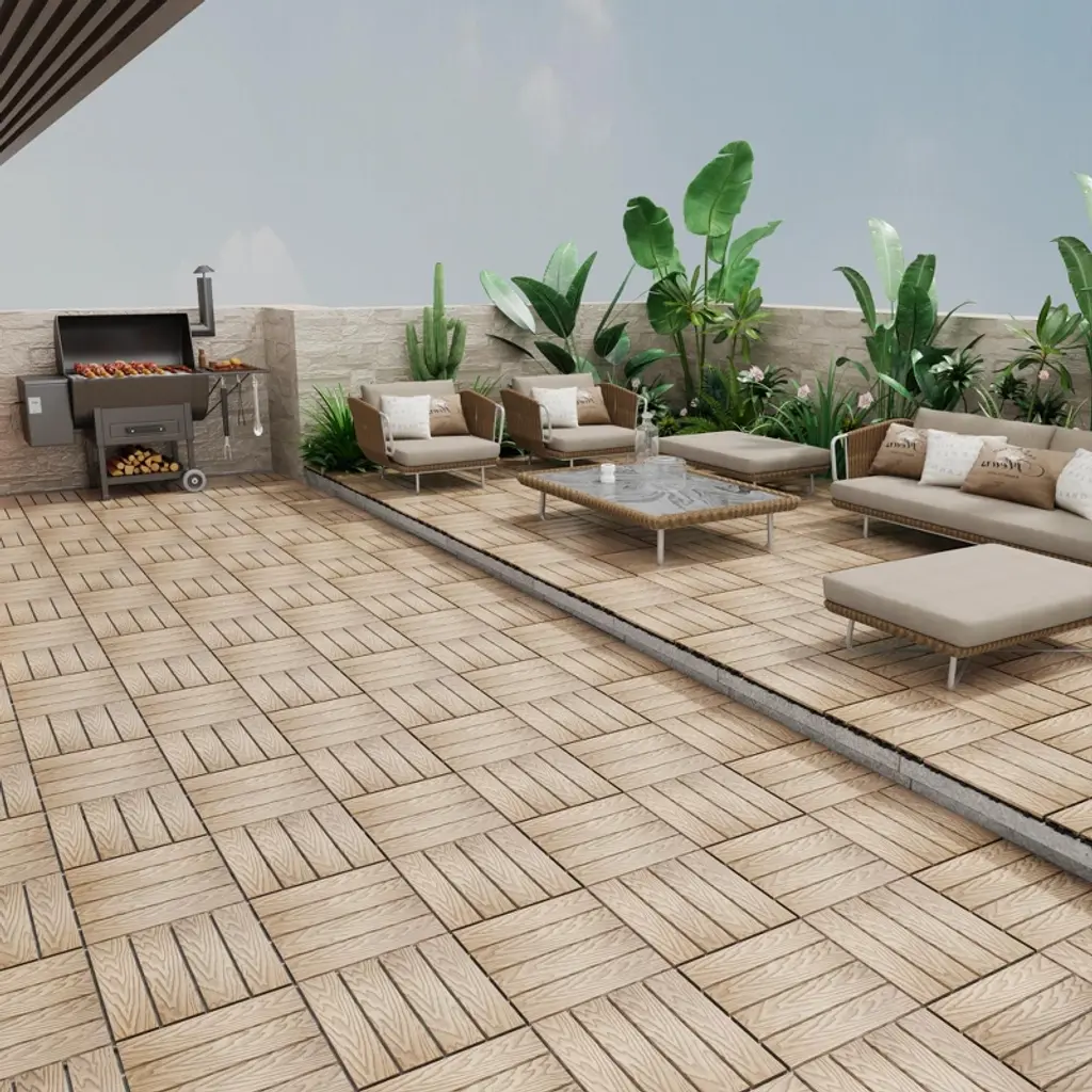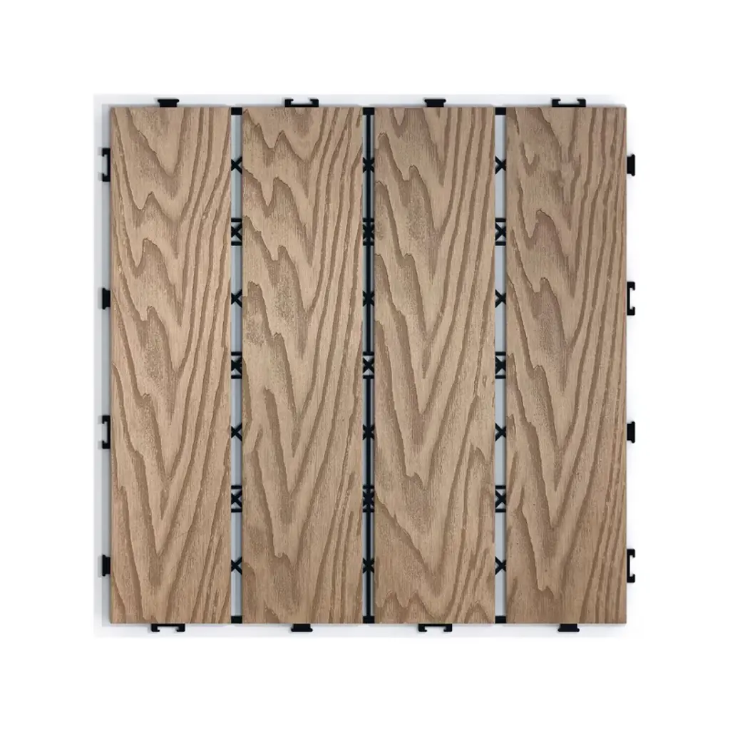Patio Floor Tiles Pack Of 11. Wpc Wood-plastic Composite. Diy Interlocking. Quick Deck, Court Tile. Water Resistant Indoor Outdoor - 11.8" 3D Teak