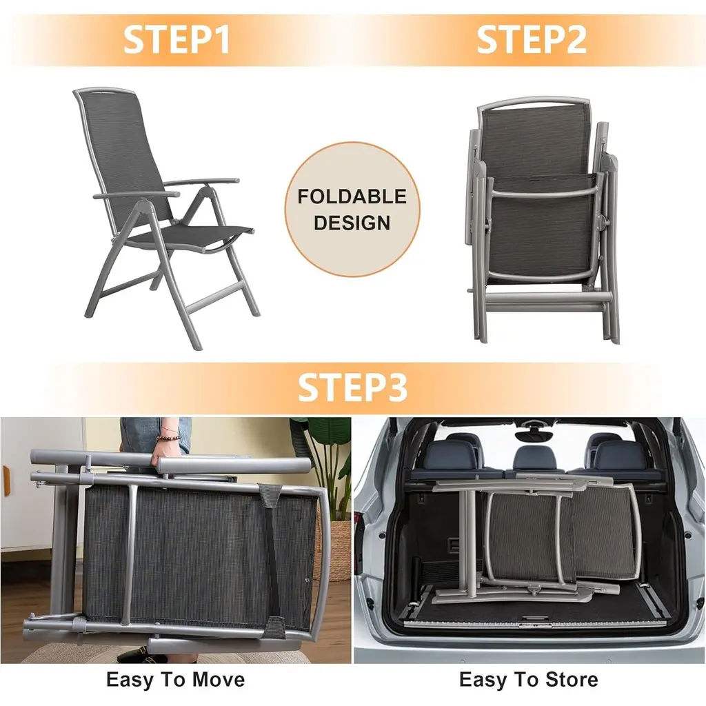 These outdoor reclining chairs are a wonderful choice for those who love to enjoy the outdoors. They are designed to provide maximum comfort and relaxation. The aluminium frame ensures durability and stability, allowing you to use them for a long time without worry. The textilene fabric seat is not only comfortable but also breathable, making your seating experience pleasant even on hot days. The adjustable high back feature allows you to find the perfect position for your comfort. Whether you are in the garden, camping, by the poolside, or on the beach deck, these chairs will be your reliable companions, adding to the enjoyment of your leisure moments.
