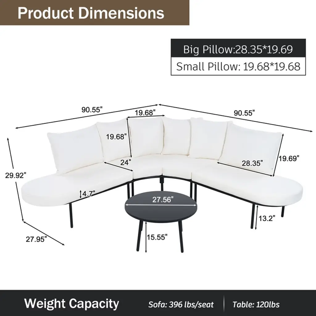 Patio Half- Moon Curved Outdoor Furniture Sofa Set With Coffee Table,padded Seats And Backrest Cushions For Garden, Beige
