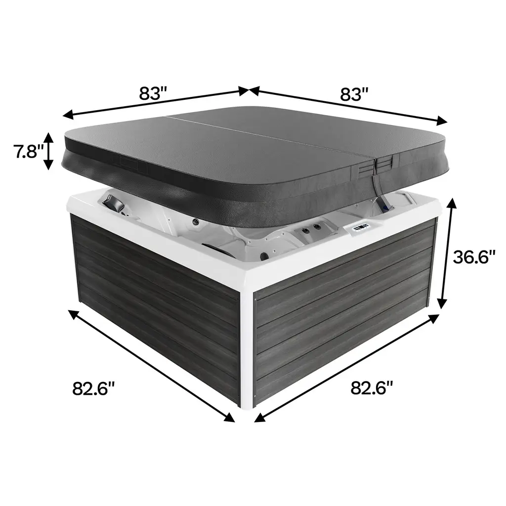 Details: Its simple interface allows for seamless operation, ensuring a hassle-free spa session every time. The VIRPOL P25B85 control system, paired with the PB557 control pad, offers easy-to-use, precise control over our hot tub’s temperature, jet strength, and lighting. Features:●Seating Capacity: 2/4 adults●Dimensions: 2-Person 67" x 53.1" x 30.3" 4-Person 70.9” x 63” x 27.6”●Water Capacity: 900 liters/237.76 gallon (Approx.)●Weight: 2-Person 216 kg/476 lbs (Approx) 4-Person 250 kg/505 lbs (Approx.)●Spa Shell Colors: Pearl Shadow●Cabinet Finishes: Brown●Jet Count: 41 Total (34 x 2-inch、3 x 2.5-inch、3 x 4.5-inch、1 x 5-inch)●Water Feature: Waterfall●Water Care System: Fresh Water with Ozone System (50mg/h)●Jet Pump: 1 x 2.0HP, 2-speed motor●Electrical Requirements: 220V/13A,60Hz●Control System: VIRPOL P25B85●Control Pad: PB557 digital control panel●Heater: 2KW Thermostat●Cover: Energy-saving insulated cover●Drainage System: Magic plastic●Filtration: 1 x 50-square-foot filter●Frame: Anticorrosive wood frame●Bottom Tray: 8mm PVC boardPlease note: Options of excessive weight or bulk will be shipped via Freight carrier and our Oversized Item Delivery/Return policy will apply.