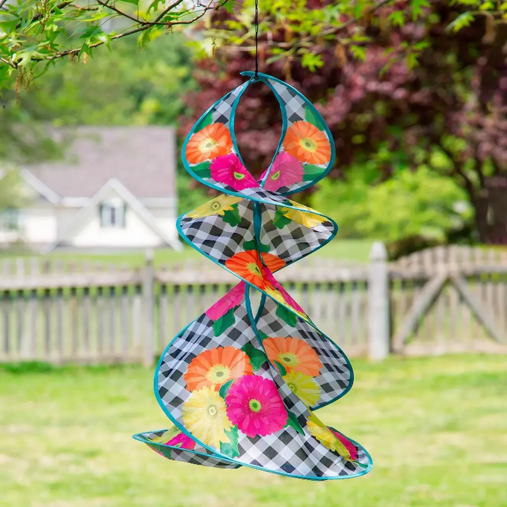 Harness the power of Mother Nature and enjoy the beauty of outdoor spaces with this stunning twirler. With intricate details and a vibrant design, this beautiful piece comes alive with each passing breeze. It’s propelled to spin around in the wind, producing a mesmerizing visual show. Crafted from powder-coated metal, the piece is durable and will hold up against the elements. The spinner comes ready to hang.