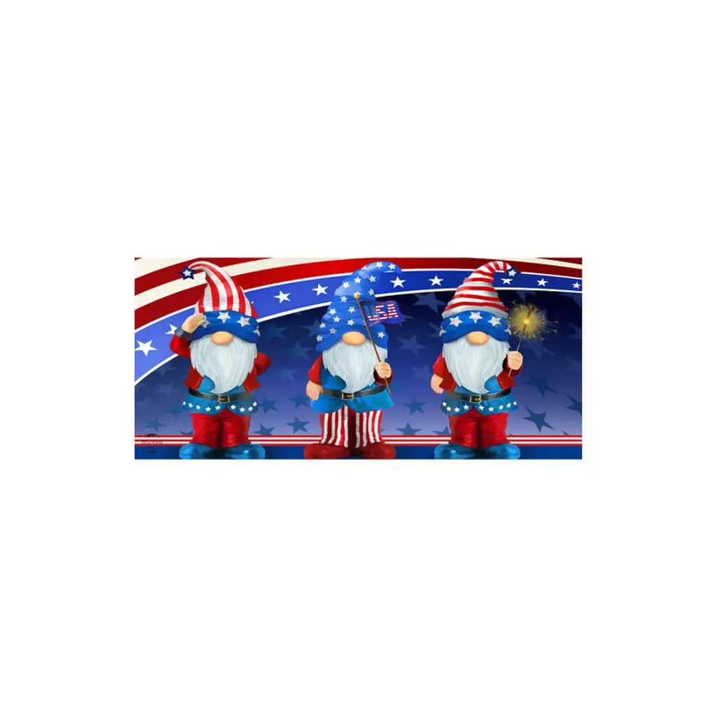 Celebrate patriotic cheer from the moment guests arrive with our Patriotic Trio Coir Doormat. This charming mat features three festive gnomes decked out in red, white, and blue, each holding pinwheels and dressed in stars-and-stripes hats—perfect for adding a playful touch to your Fourth of July décor or summer entryway style.Made from natural coir fibers with a durable PVC backing, this doormat helps trap dirt and moisture while offering a cheerful and seasonal welcome to your doorstep.