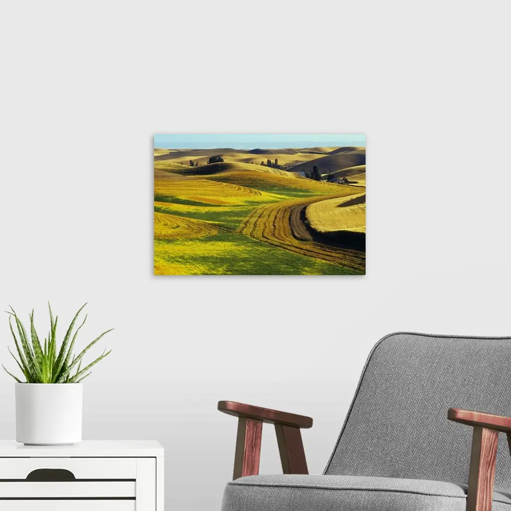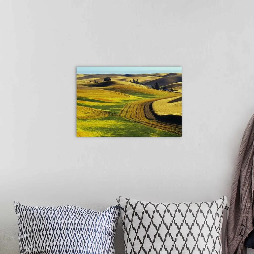 Patterns in farm fields, rolling hills of Palouse region, Washington wall art for home and office decor. Discover canvas art prints, photos, mural, big canvas art and framed wall art in GreatBigCanvas.com's varied collections.