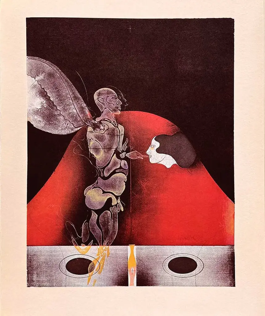 Paul Wunderlich Country: Germany Title: L’Ange a L’index – 19 Medium: Photogravure Marks: Not signed nor numbered Printed: 1974 by Atesa S.A., Geneva Paper: Heavy matte paper size 14 x 11.50 inches Condition: Fine Certificate of Authenticity is included