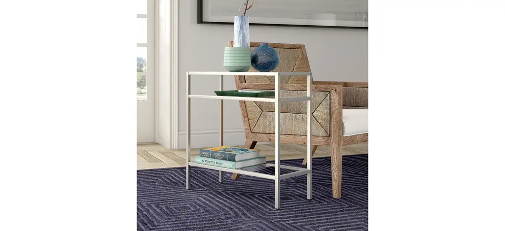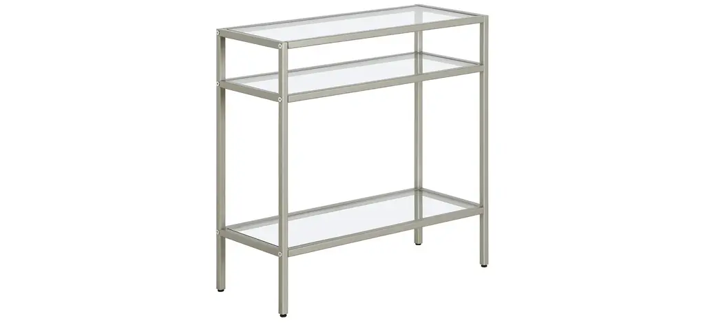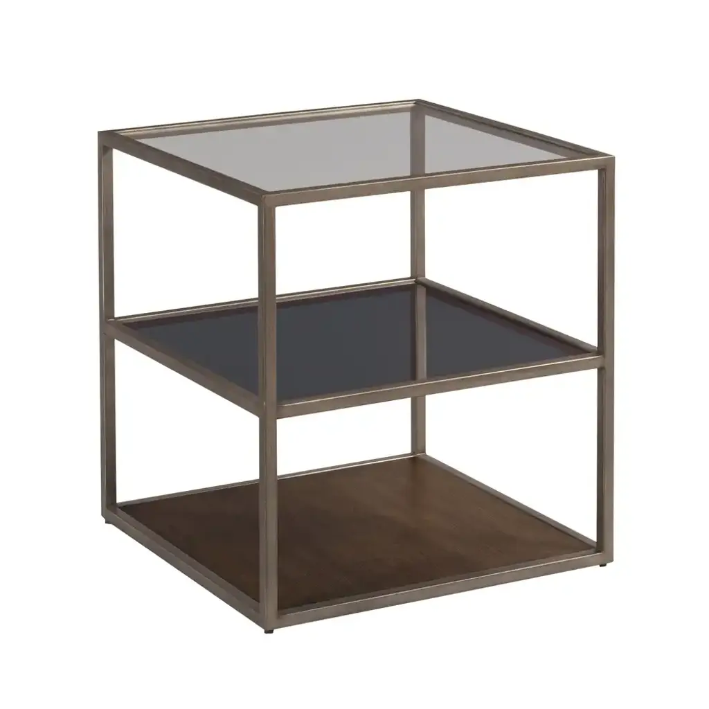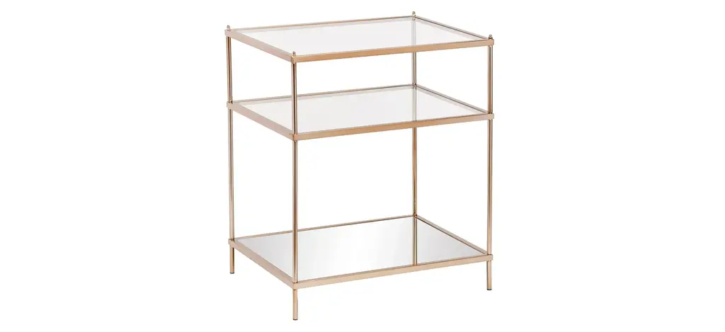 Cultivate effortless modern glam style with the clean lines of this Pauline side table. Its rich neutral tones complement any color palette, while the glass top and shelves create the perfect backdrop for a magazine-ready display. This table creates stylish storage possibilities in any room.