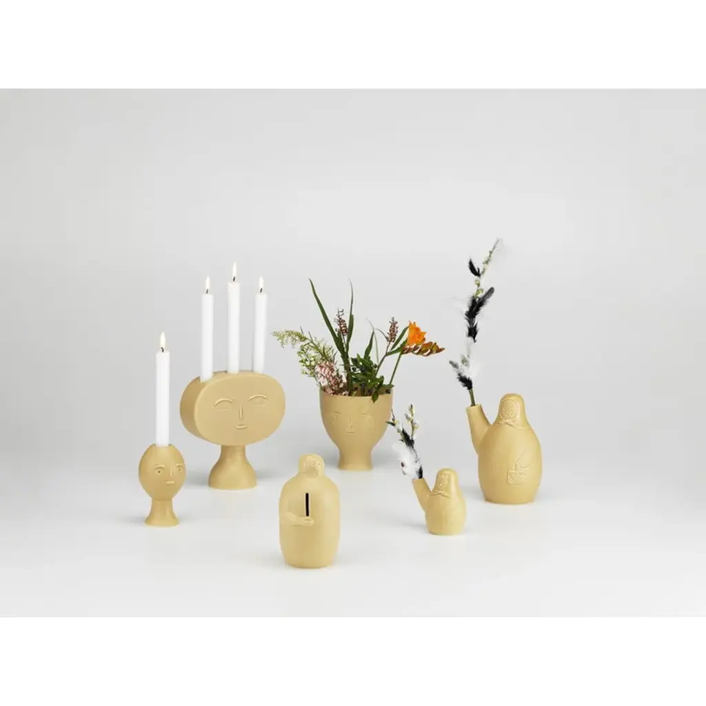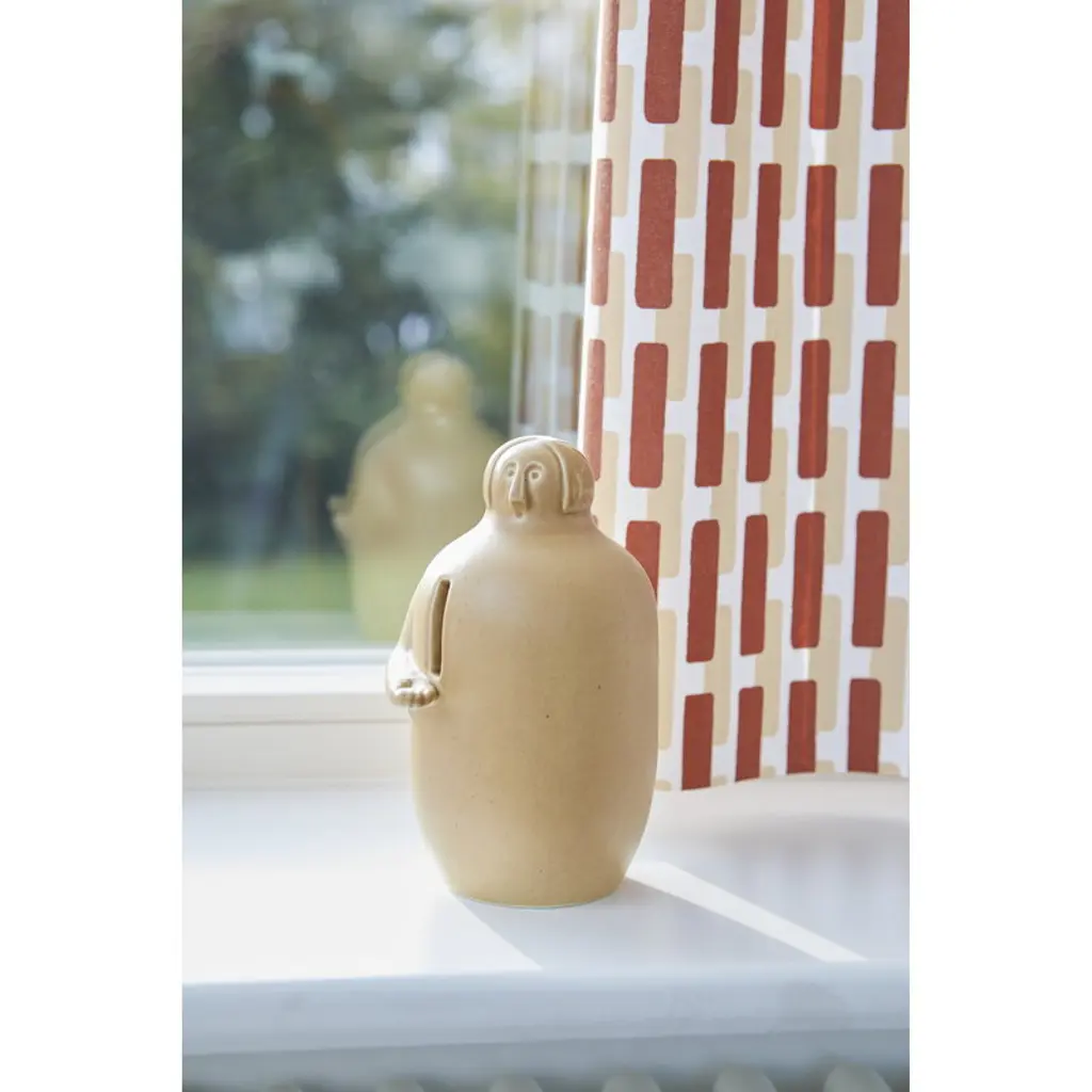 Pauper Coin Collector is an expressive ceramic piggy-bank designed by the Finnish COMPANY for Artek. It was inspired by an old Finnish tradition of placing wooden pauper statues outside churches to collect money for the poor. According to COMPANY, the Pauper is a reminder of the cold, dark polar night season that emphasizes the importance of helping one another. Designed by the Finnish-Korean designer duo COMPANY and released in 2019, the ceramic objects are part of the FIN/JPN Friendship Collection by Artek. The collection celebrates the 100th anniversary of diplomatic relations between Finland and Japan. When designing the objects, COMPANY imagined what kind of gifts the Finnish delegation could have brought with them to Japan a hundred years ago. Each of the handmade, charmingly naive objects celebrates one seasonal ritual of the Finnish calendar.