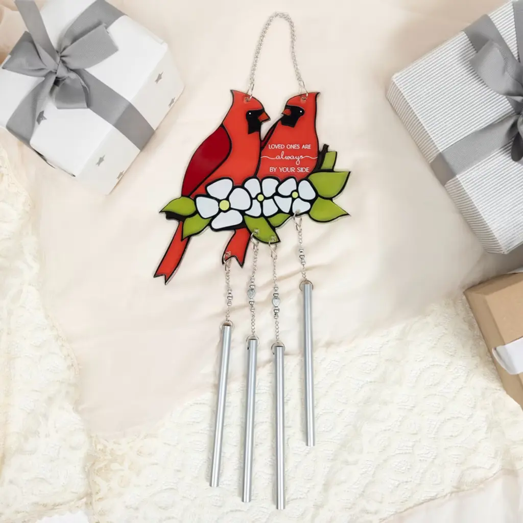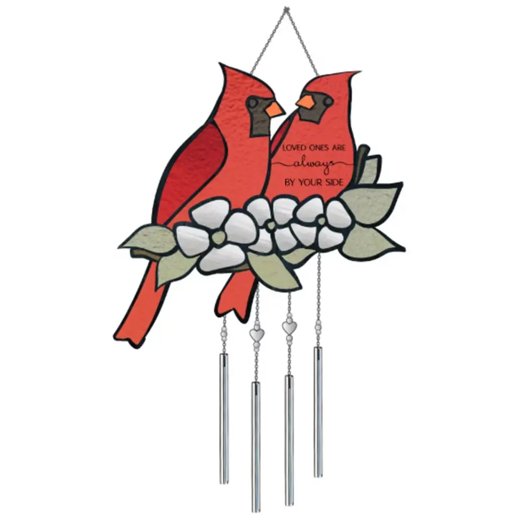 The “Always” Wind Chime from Pavilion’s “Always By Your Side” collection was lovingly designed to provide solace to those navigating the loss of someone special. Standing 19.75 inches tall, this elegant wind chime features two radiant red cardinals resting together, symbolizing companionship and enduring love.