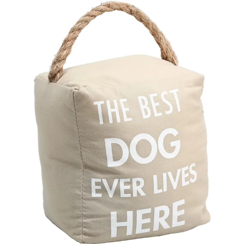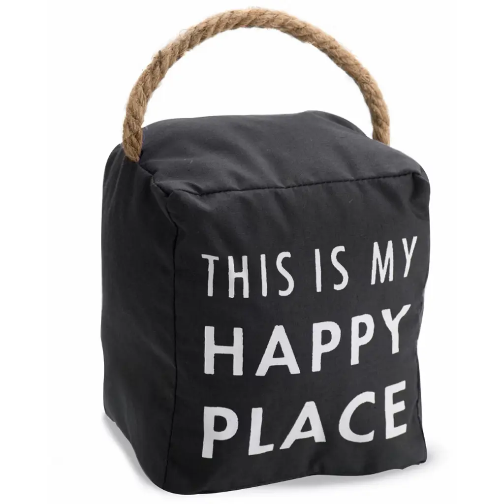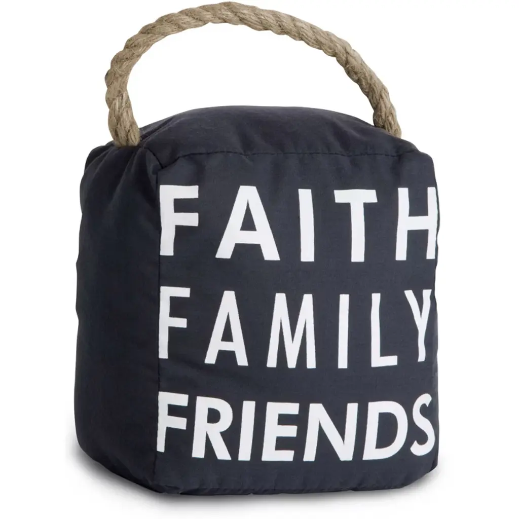 This decorative 5" door stopper is packaged in a plain box. It is made from polyester, linen, and rope and filled with sand and polyester. Best if used for interior doors, not for heavy fire doors, and weighs approximately 2 pounds. "Bless This Mess" text is printed onto the front of the door stopper. Wipe clean with a damp cloth. Great for gifting to a friend.
