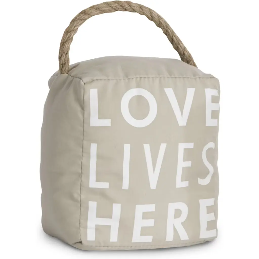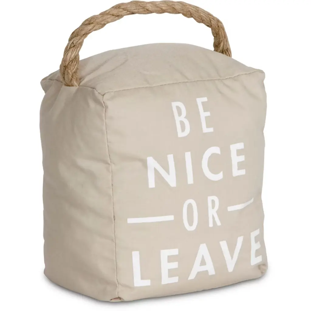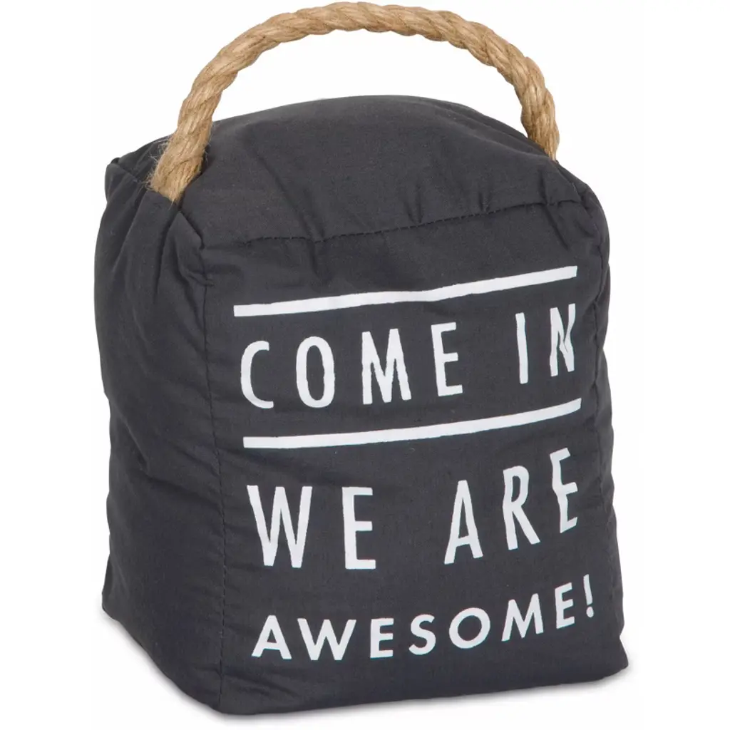 This decorative 5" door stopper is packaged in a plain box. It is made from polyester, linen, and rope and filled with sand and polyester. Best if used for interior doors, not for heavy fire doors, and weighs approximately 2 pounds. "Bless This Mess" text is printed onto the front of the door stopper. Wipe clean with a damp cloth. Great for gifting to a friend.