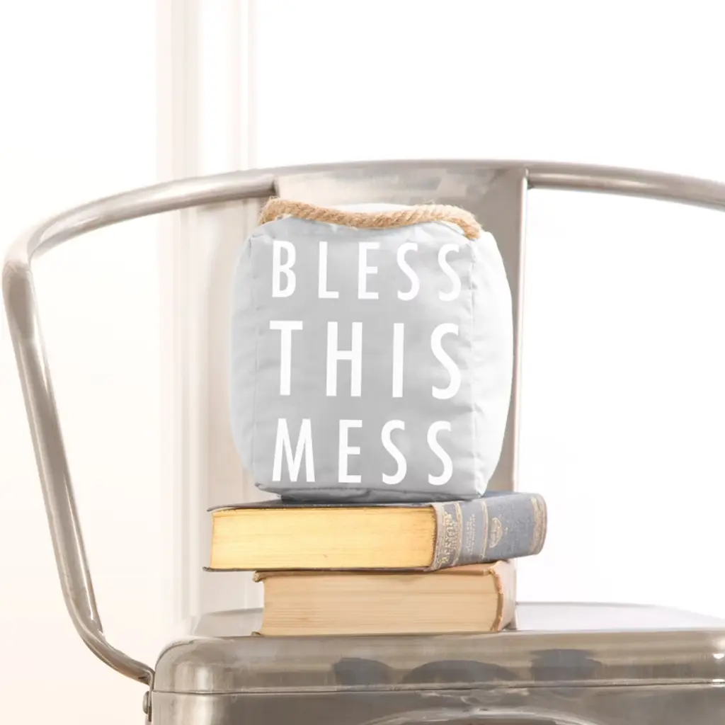 Pavilion Gift Company - Bless This Mess - 5" X 6" Gray Door Stopper - Door Stops