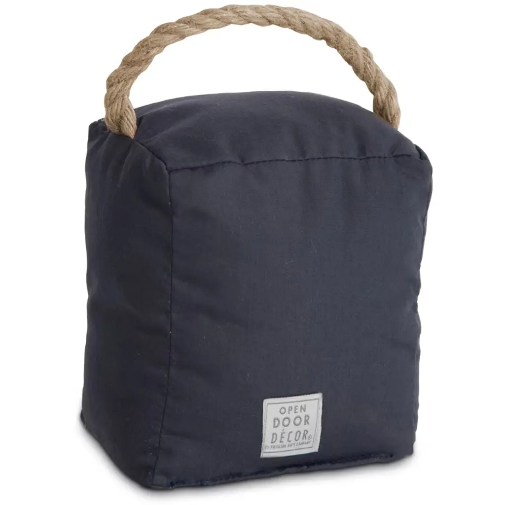 This decorative 5" door stopper is packaged in a plain box. It is made from polyester, linen, and rope and filled with sand and polyester. Best if used for interior doors, not for heavy fire doors, and weighs approximately 2 pounds. "Welcome Family & Friends" text is printed onto the front of the door stopper. Wipe clean with a damp cloth. Great for gifting to a friend.