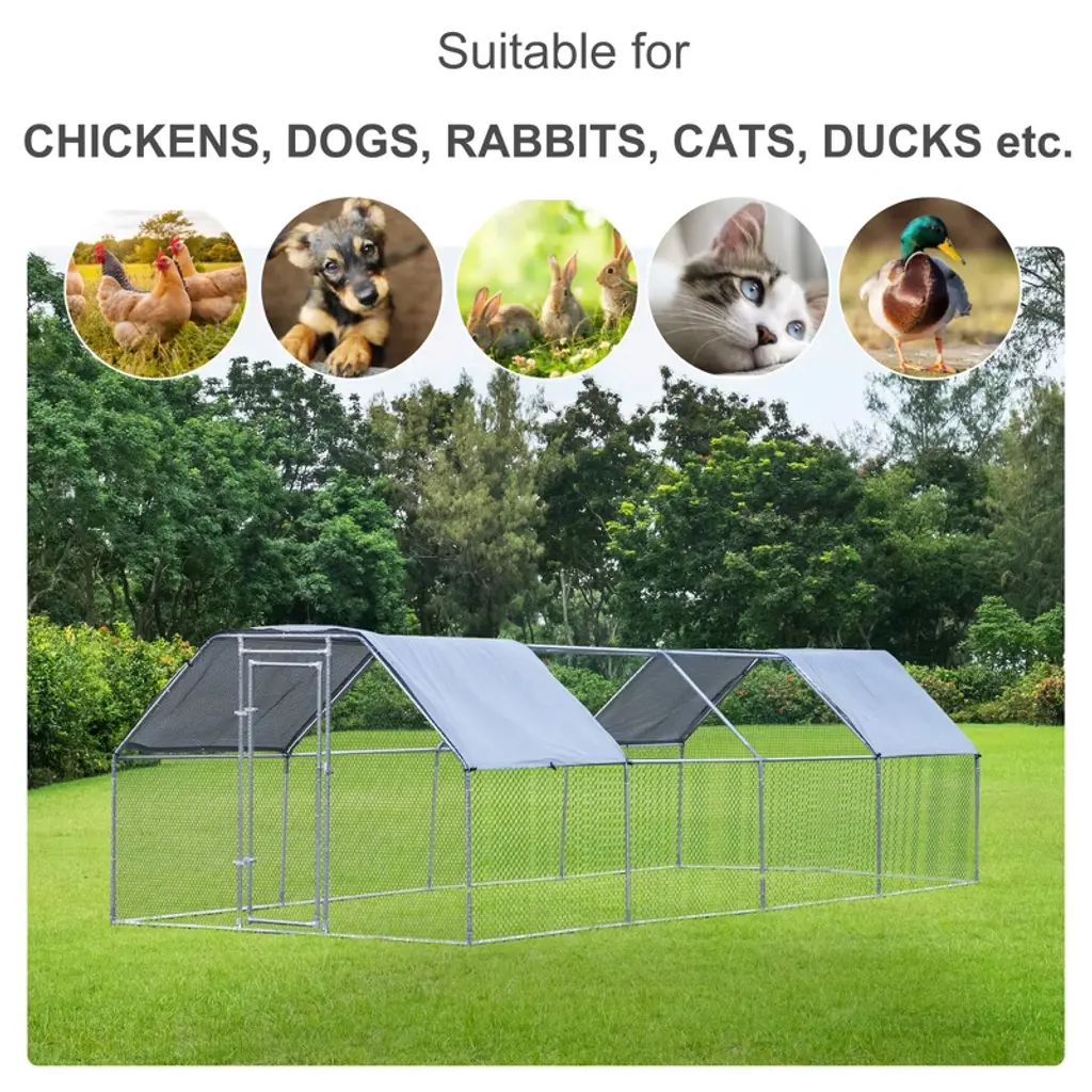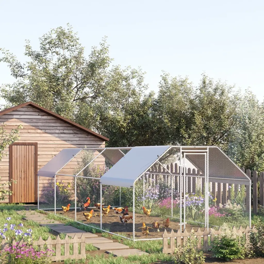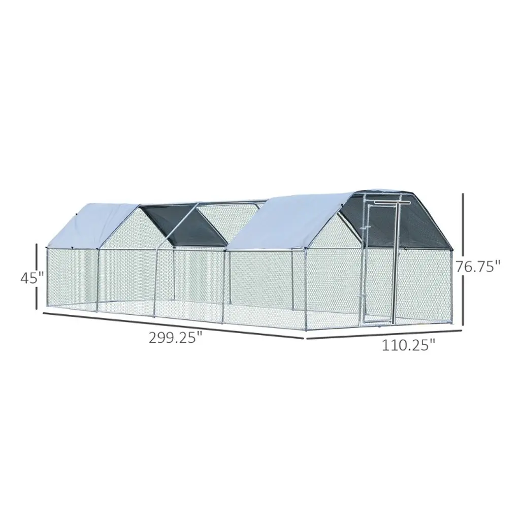 Pawhut 24' Metal Chicken Coop Run With Roof, Walk-in Chicken Coop Fence, Chicken House Chicken Cage Outdoor Chicken Pen Hen House
