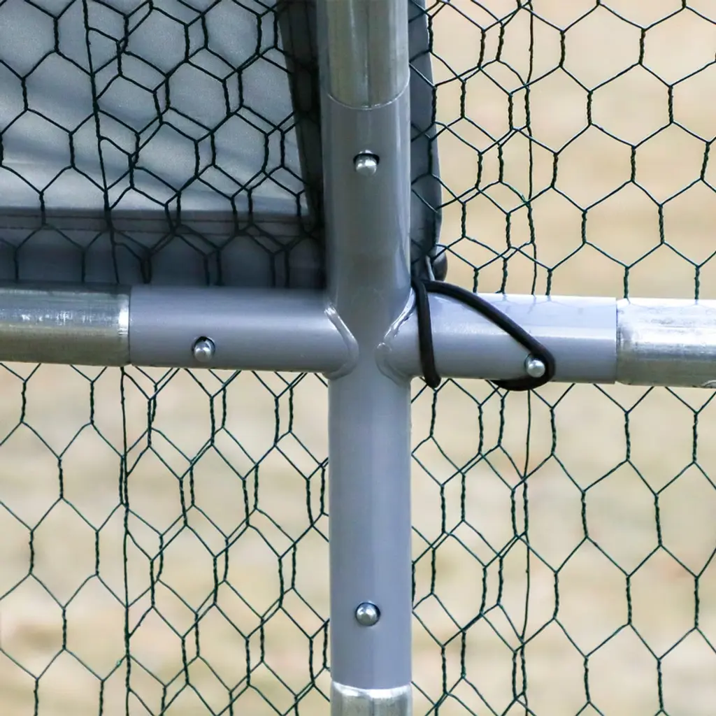 The roofing in this PawHut poultry enclosure caters a more comfortable lifestyle for your chickens, while giving you the luxury of space to walk around inside. Keep your animals cool, dry, and protected from overheating and rain. Powder-coated mesh wire and galvanized steel prevent predators while allowing air circulation. This metal chicken coop has the strength to outlast harsh use.