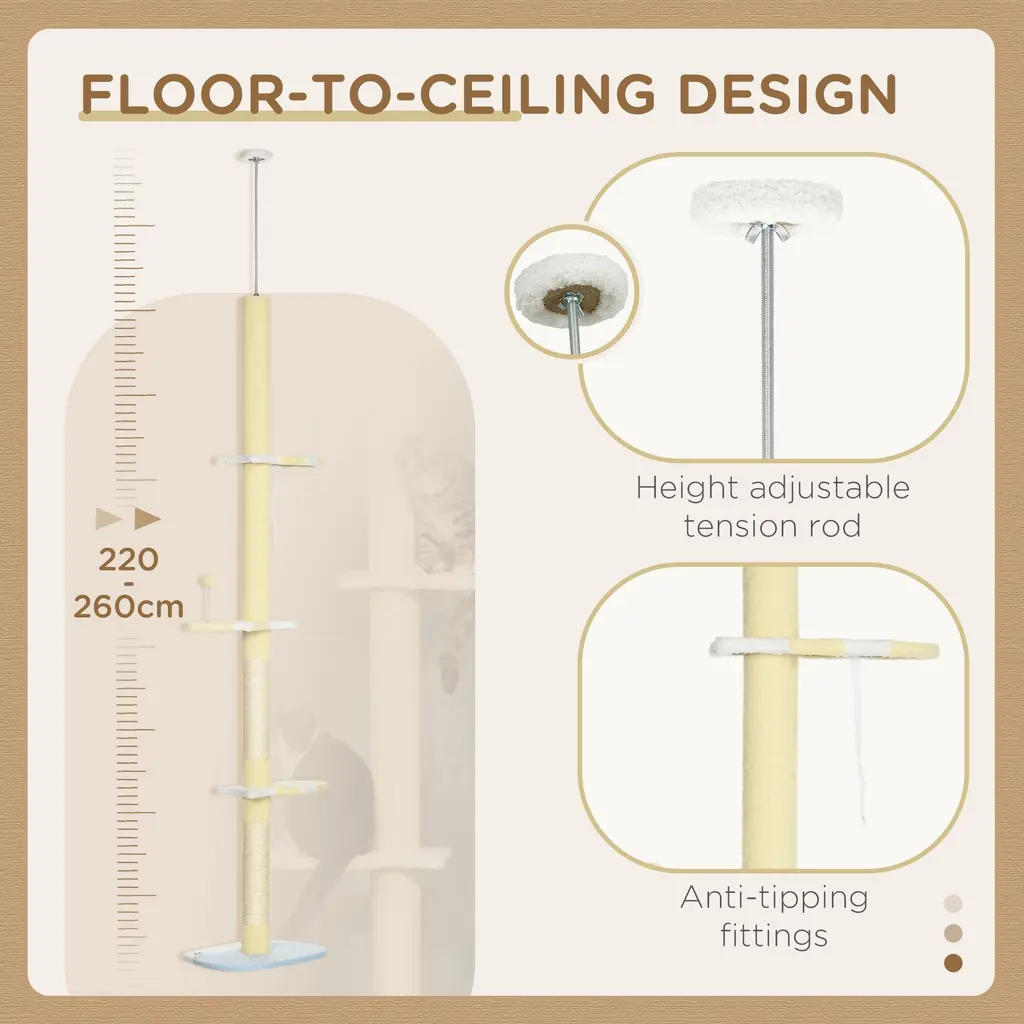 Pawhut 4-Tier Tall Cat Tower, Floor To Ceiling Cat Tree, Height Adjustable 87 - 103 Inch - Yellow