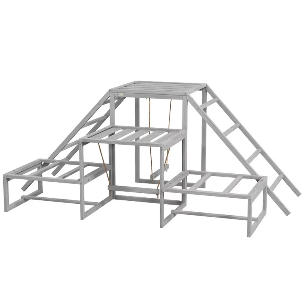 Pawhut Chicken Toys For Coop, Chicken Swing Set Chicken Coop Accessories For Poultry Run With Wood Stand, Ladder Platforms For 10-15 Chickens, Gray