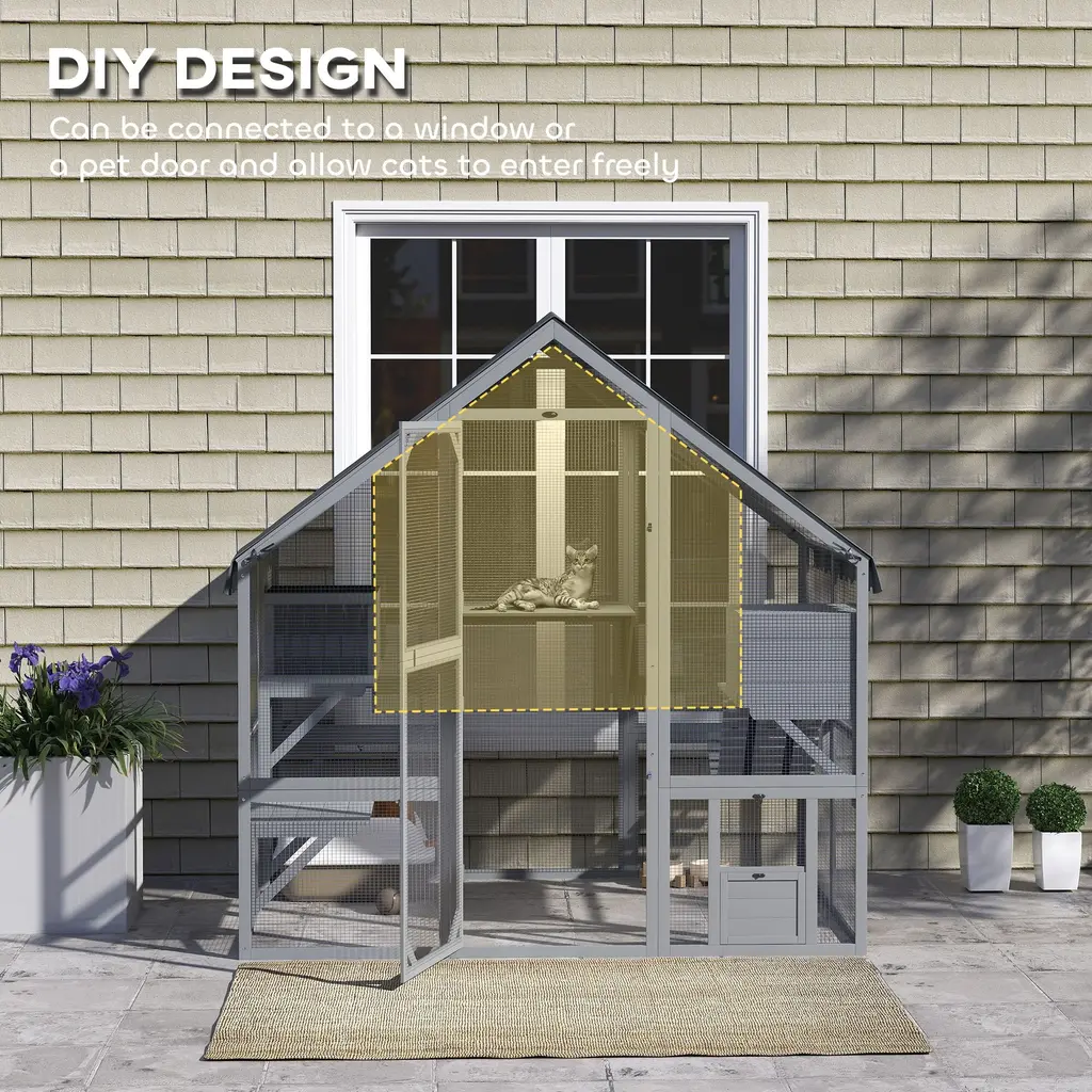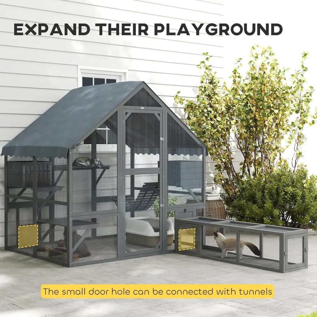 Pawhut Large Catio Outdoor Cat Enclosure For Multiple Kittens, Wooden Cat House With Waterproof Cover, Gray - Grey